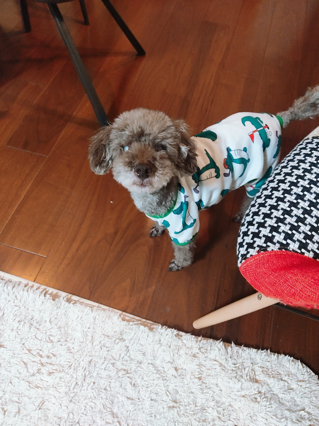 ブラウントイプーくんと遊んでいると、後ろで寝ていたレッドトイプーくんがビックリして起きてしまいました(汗)ごめんね〜🐾