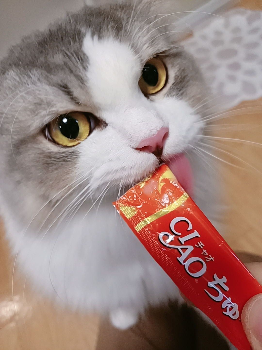 ちゅーるを食べる時は、とても大人しいのでその隙にブラッシングをしちゃいました〜😻