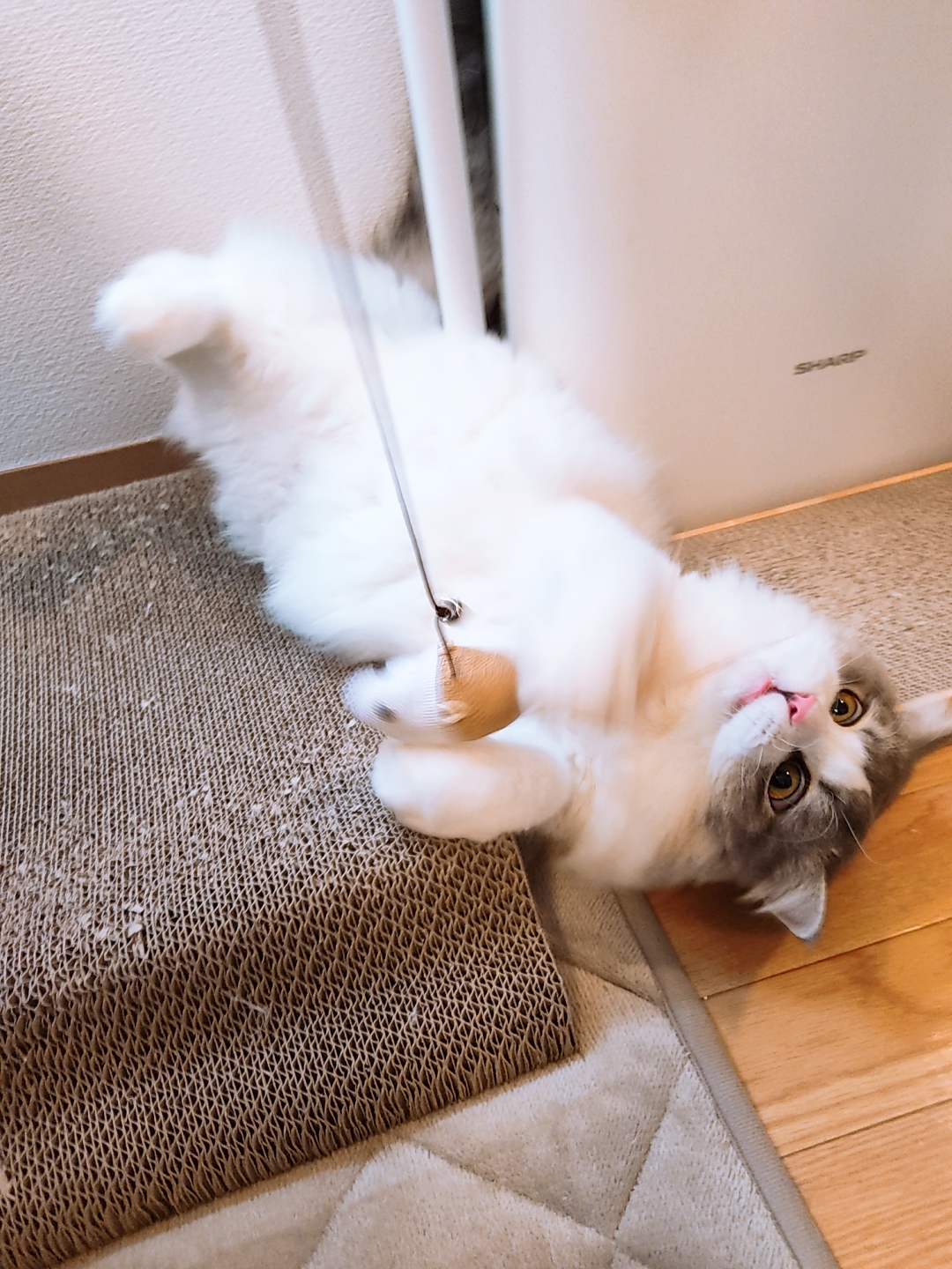 おもちゃ目掛けて突き進みます(笑)お顔をぶつけないか心配🙀(汗)心配ご無用大丈夫でした。