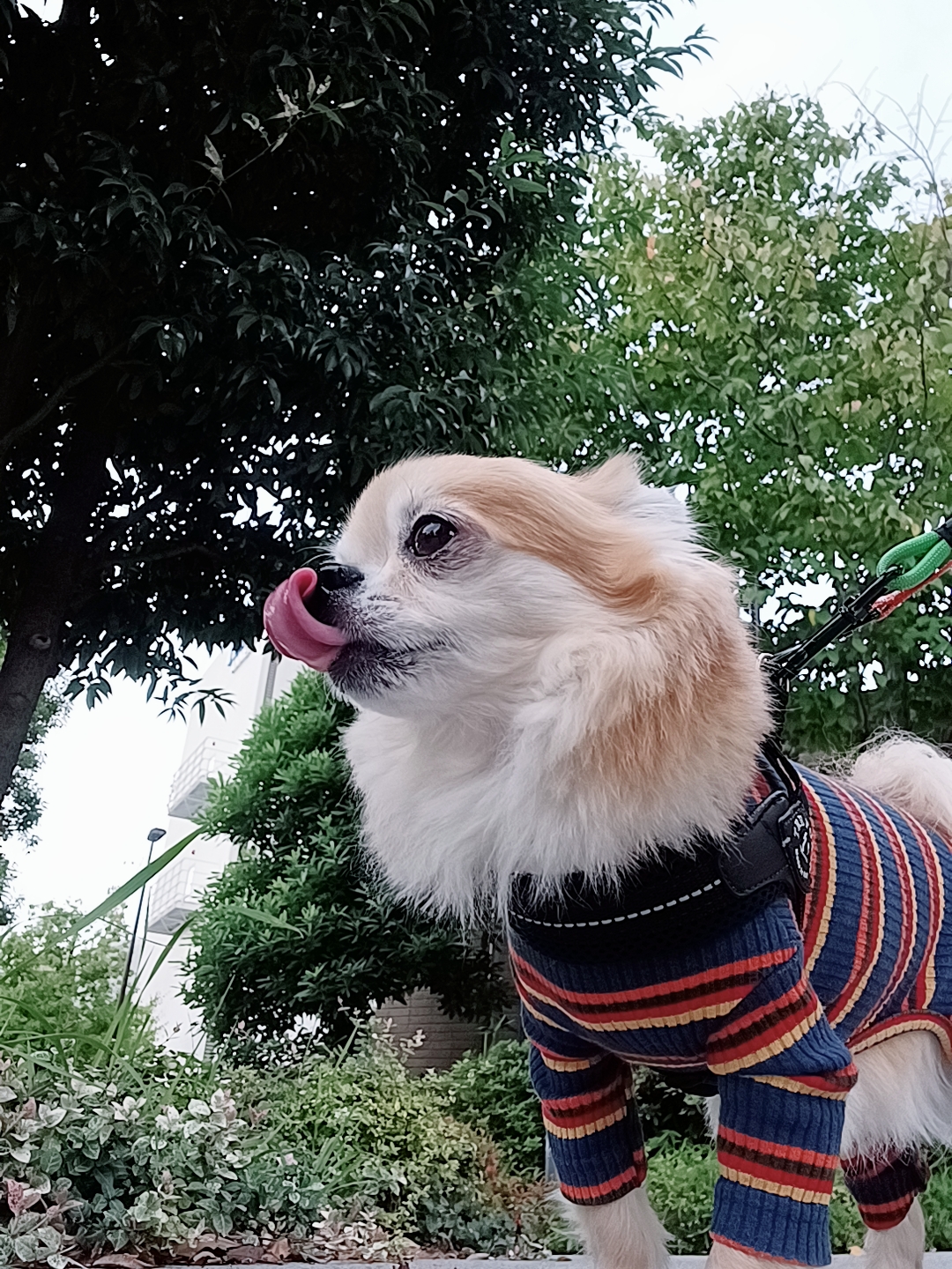 お散歩の時よりテンション上がって早く早く頂戴頂戴と私の顔までジャンプをする元気なチワワくんです。