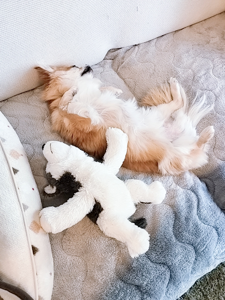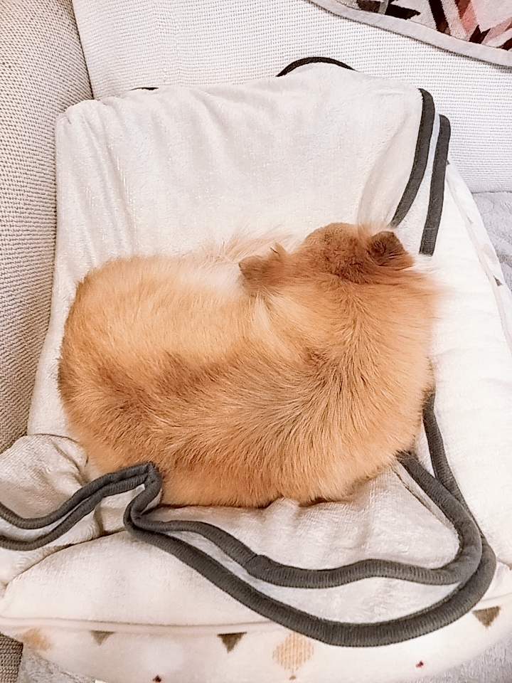 食べ終わると素早くお布団に入りました〜(笑)🐶
