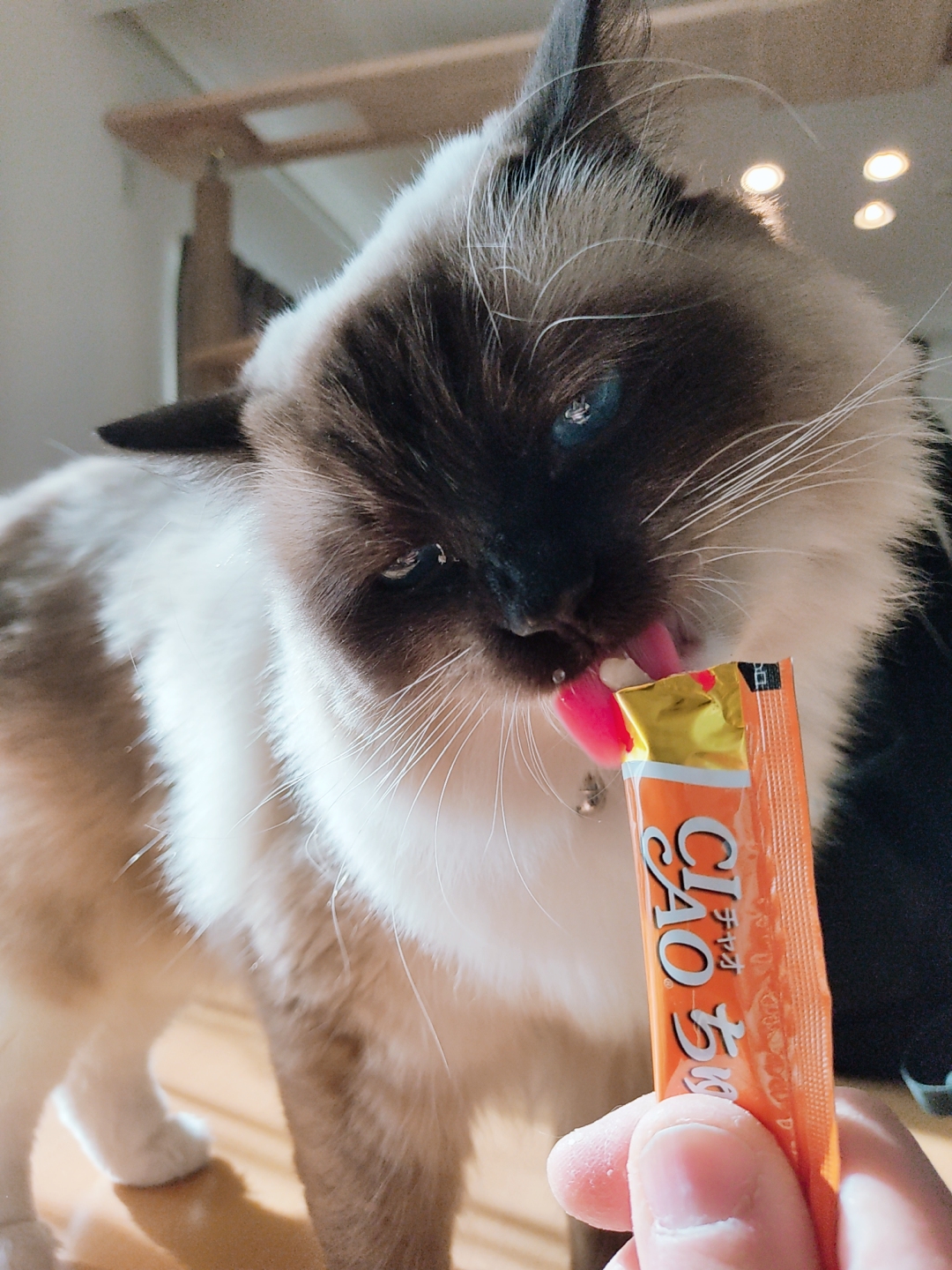 ラグドールちゃんは上手に食べられましたが、アメリカンショートヘアくんは直接食べは苦手の様でお皿に移し綺麗に完食😻