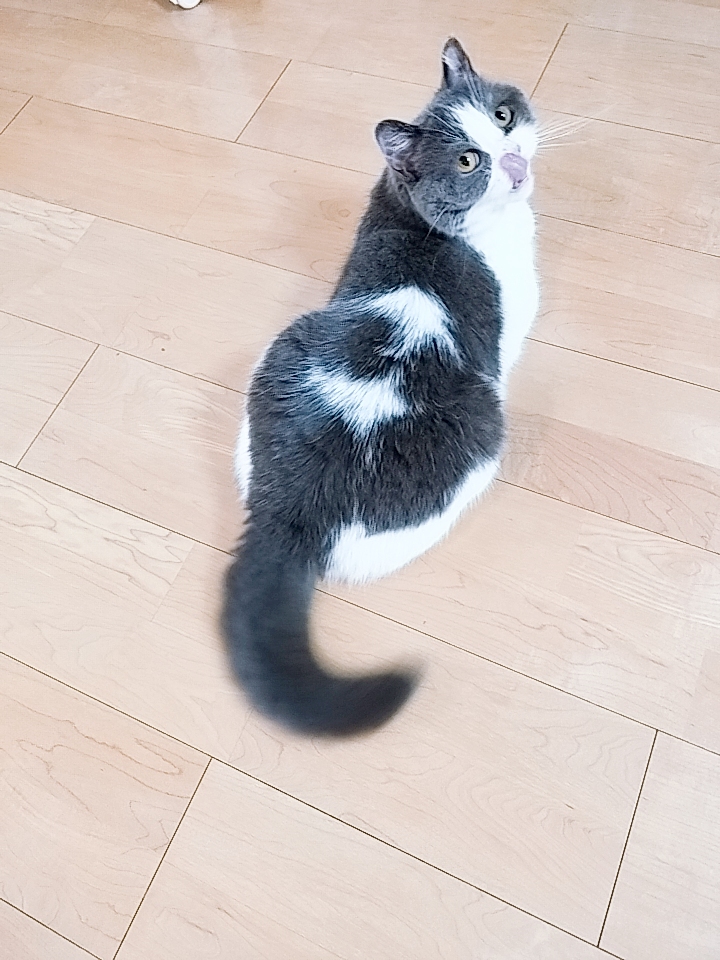 いつものように回転スリスリしながらお出迎えありがとうね😻