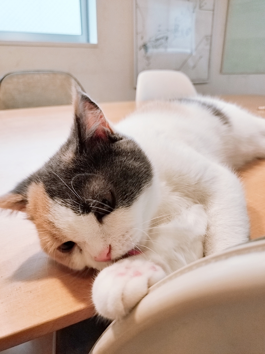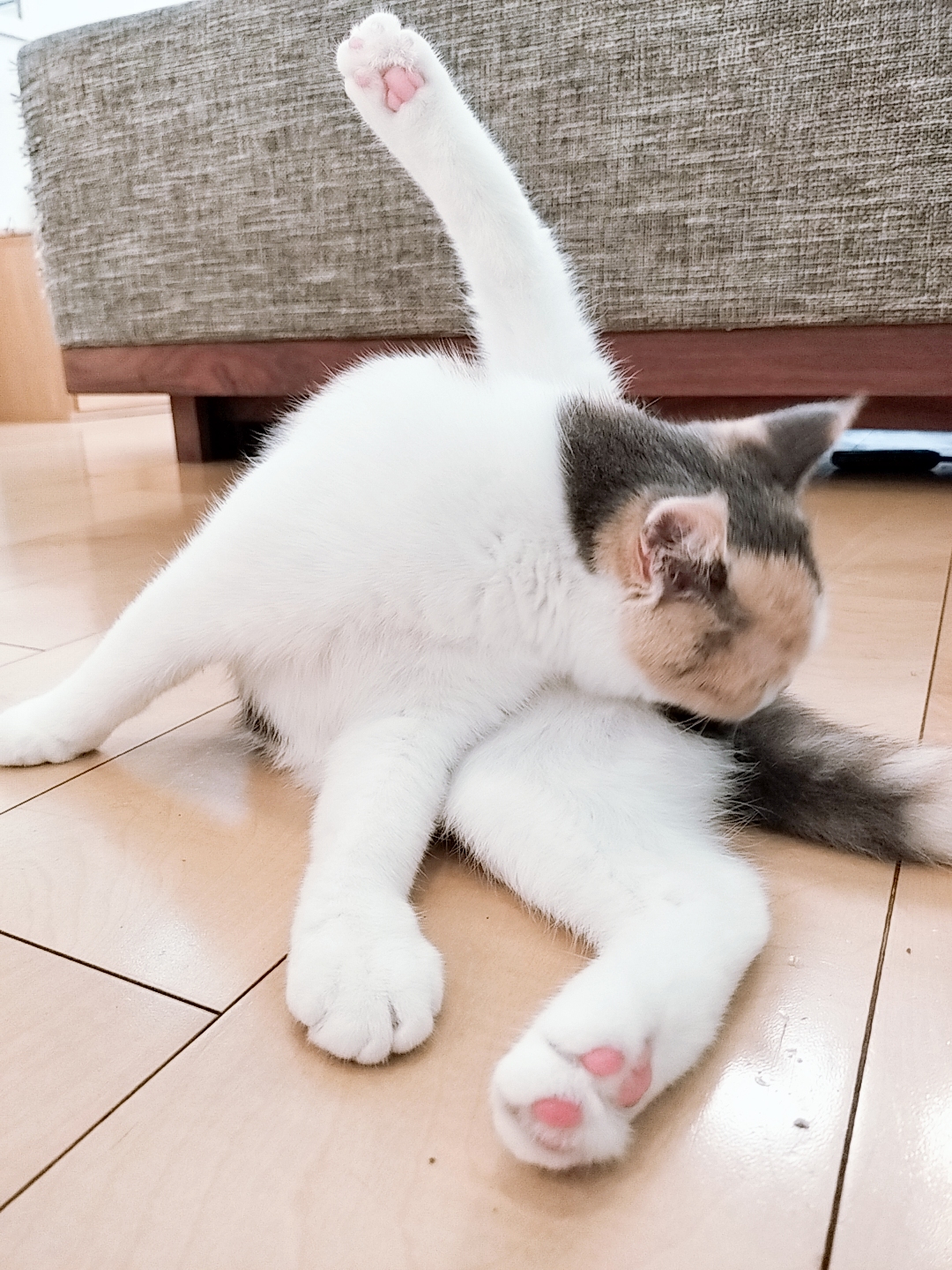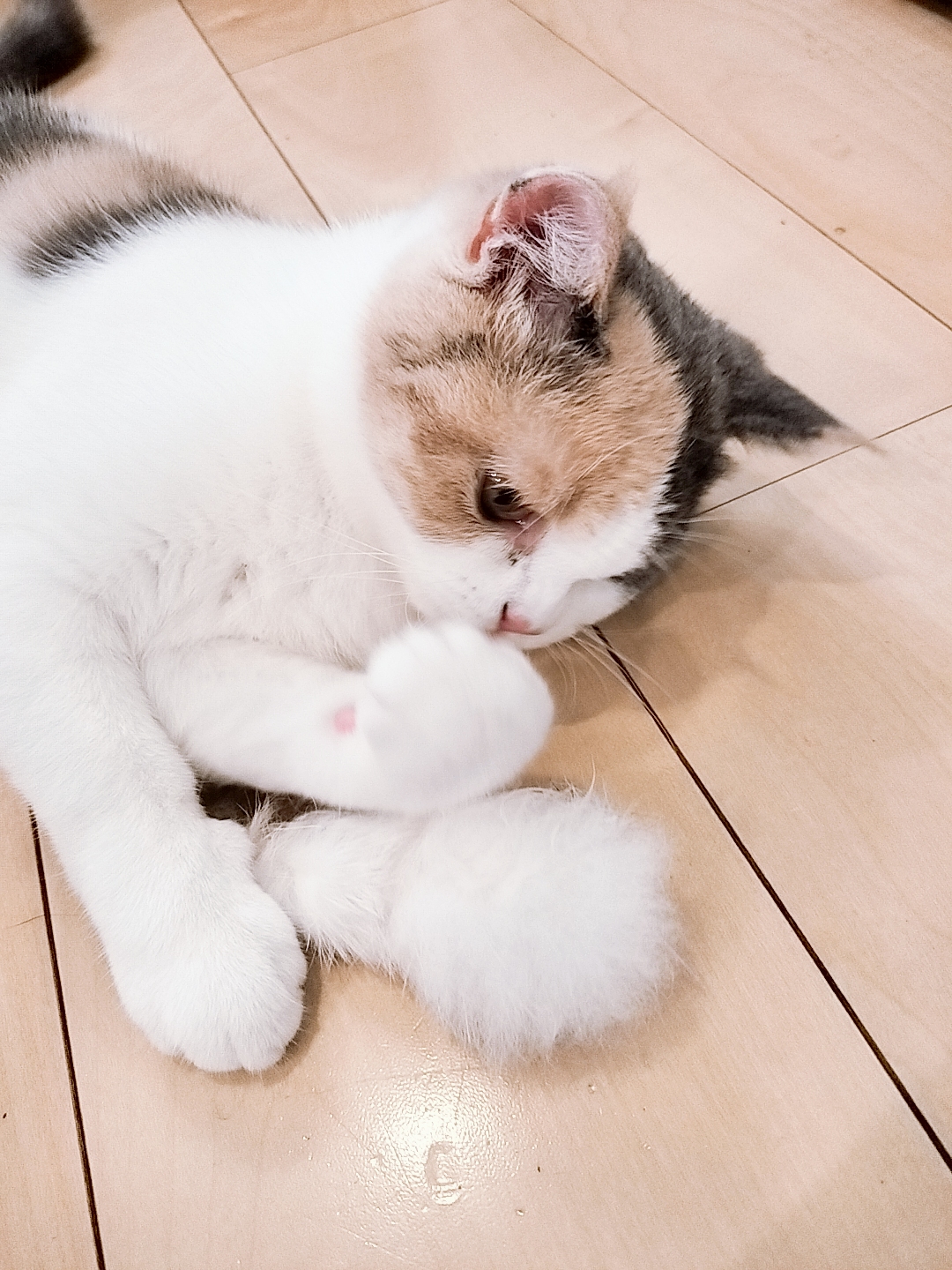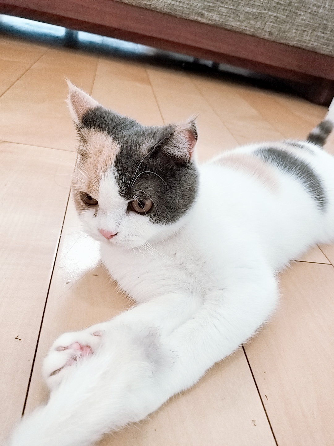 😸爪切りは手足をピーンと伸ばしカットしやすい体勢でいてくれました。お顔拭きはちょっぴり苦手だったけど頑張りました。