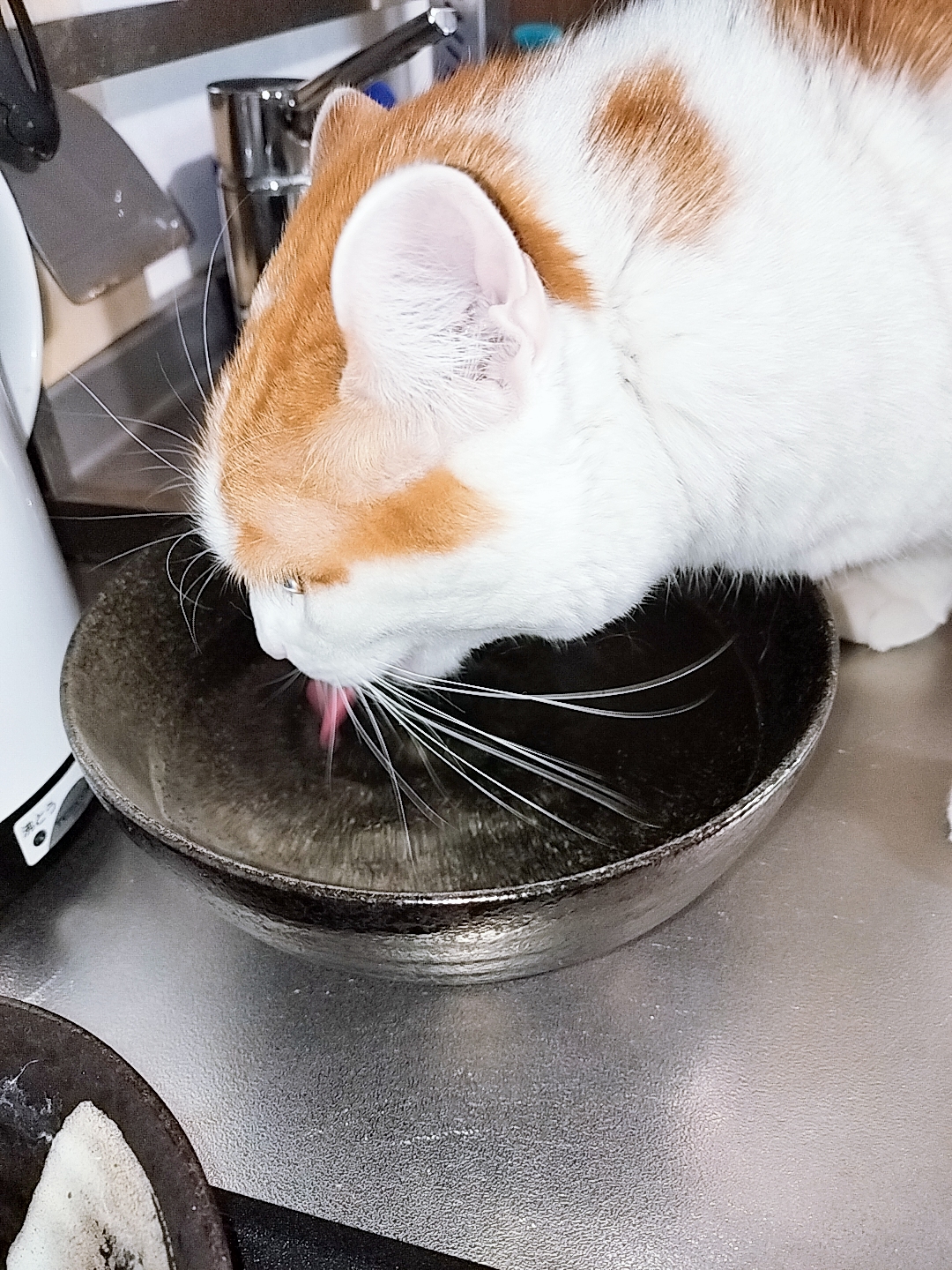 遊んだ後はお水を飲んでご飯を食べてグルーミングで綺麗になってまた おこたに入りました〜🐾