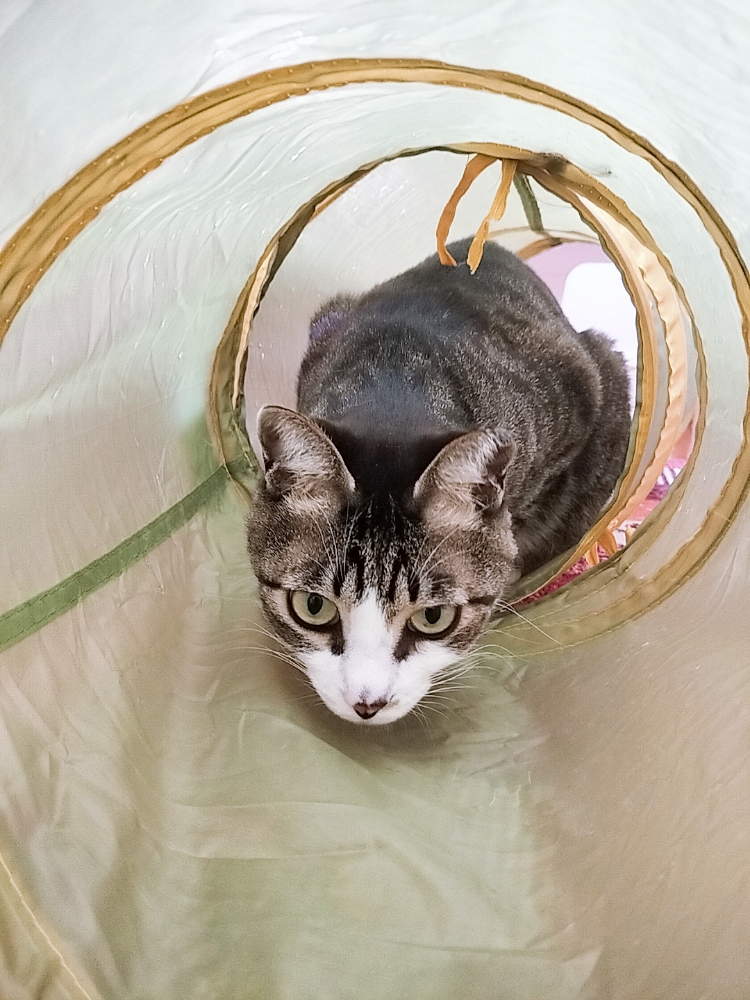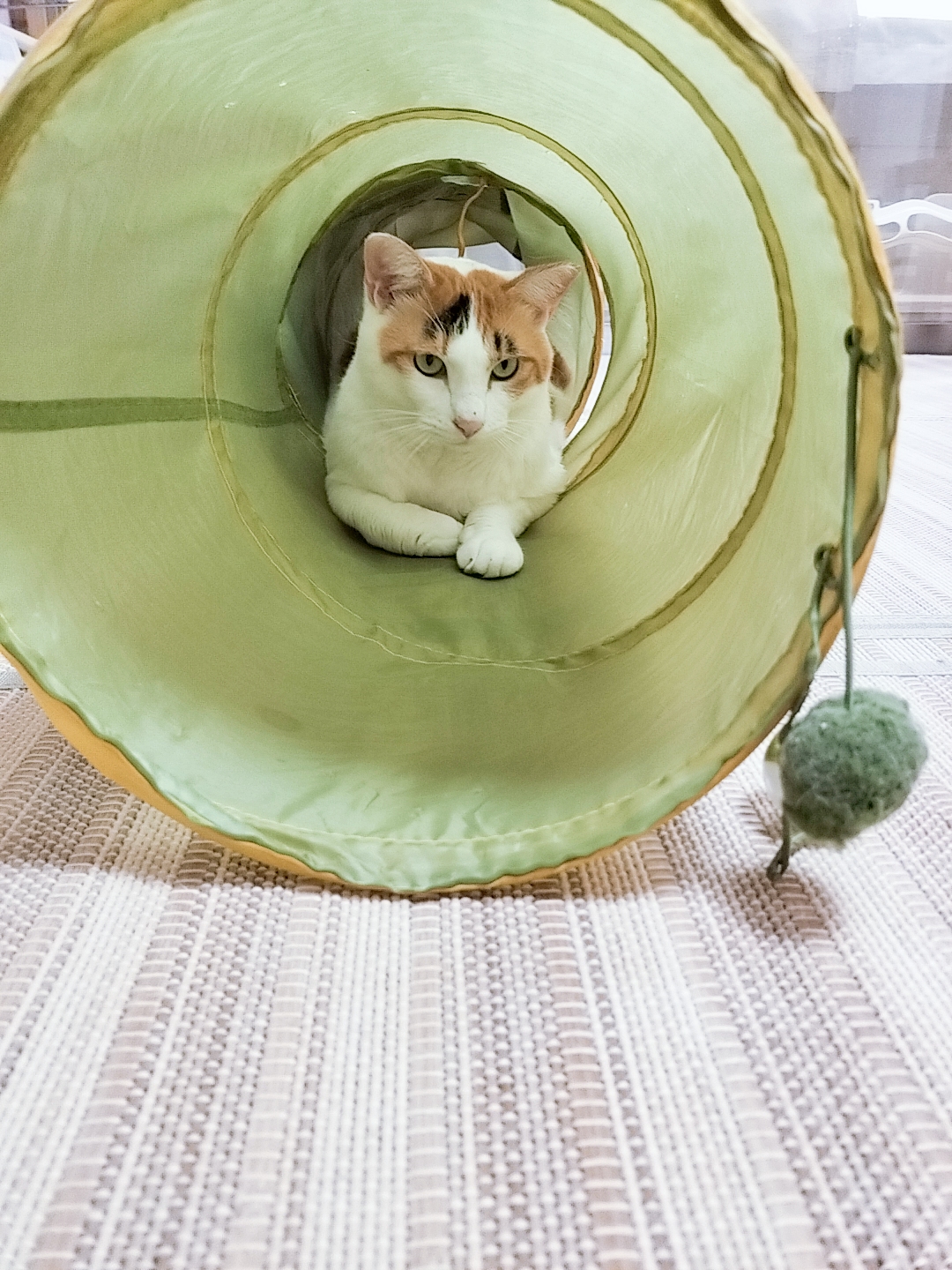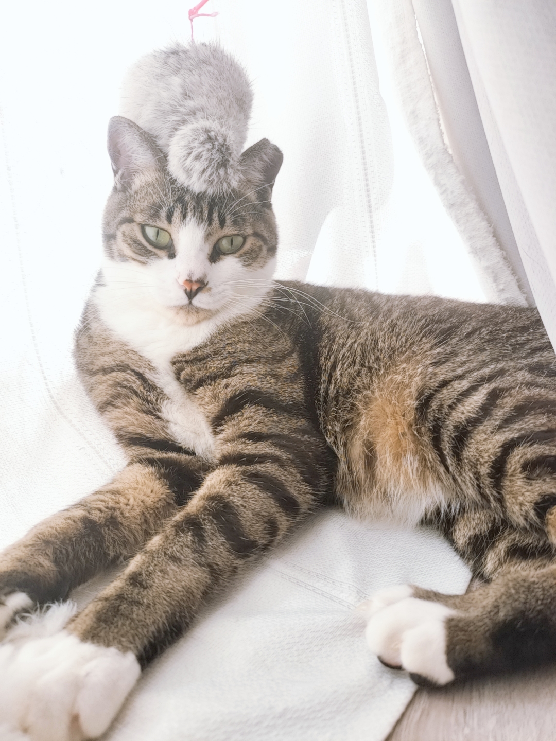 😺ネコちゃんが大人しく上を見ているのは😷私のマスクに秘密があるんですよ〜(笑)ナイショです✨