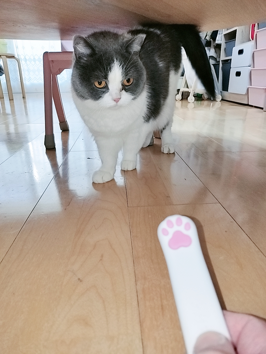 ニャンコレーザーで遊んでいる時、真横に光線が止まるとビックリ!!!