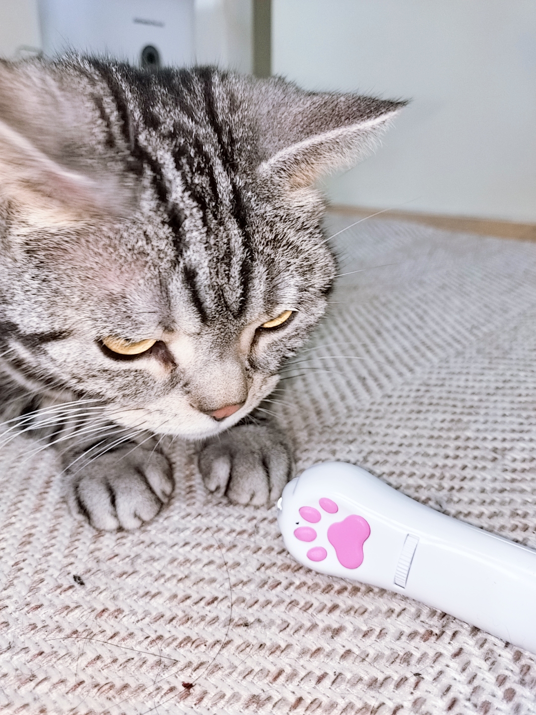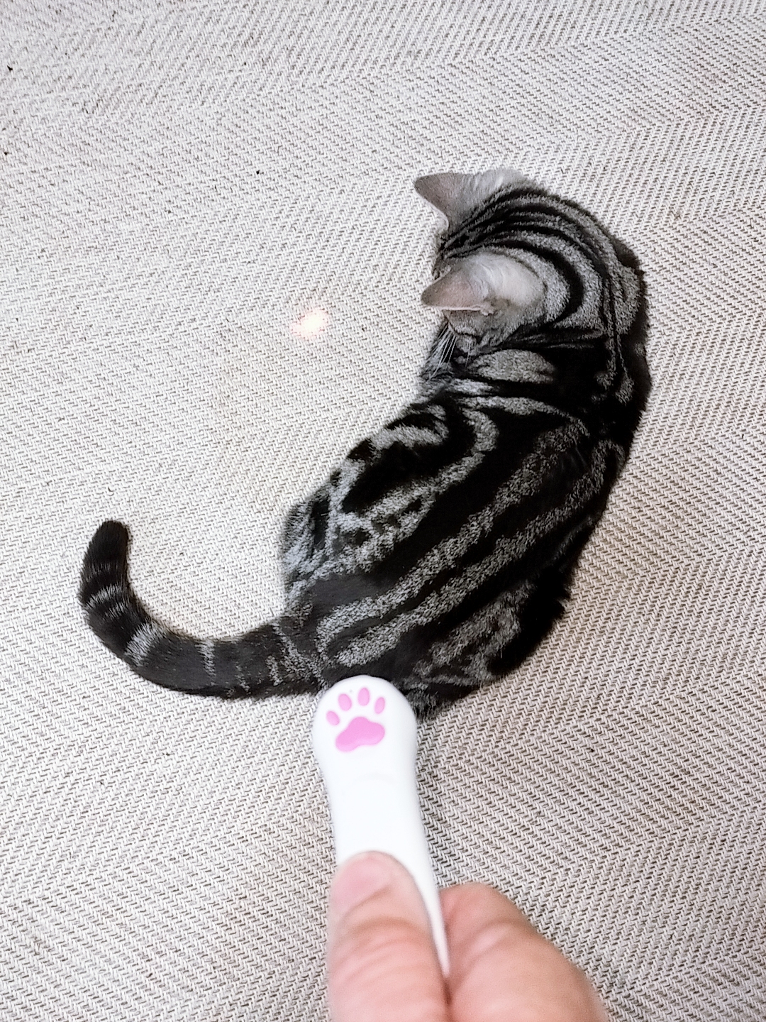 😻ニャンコレーザーが大好きな7歳のアメショーちゃんです。
