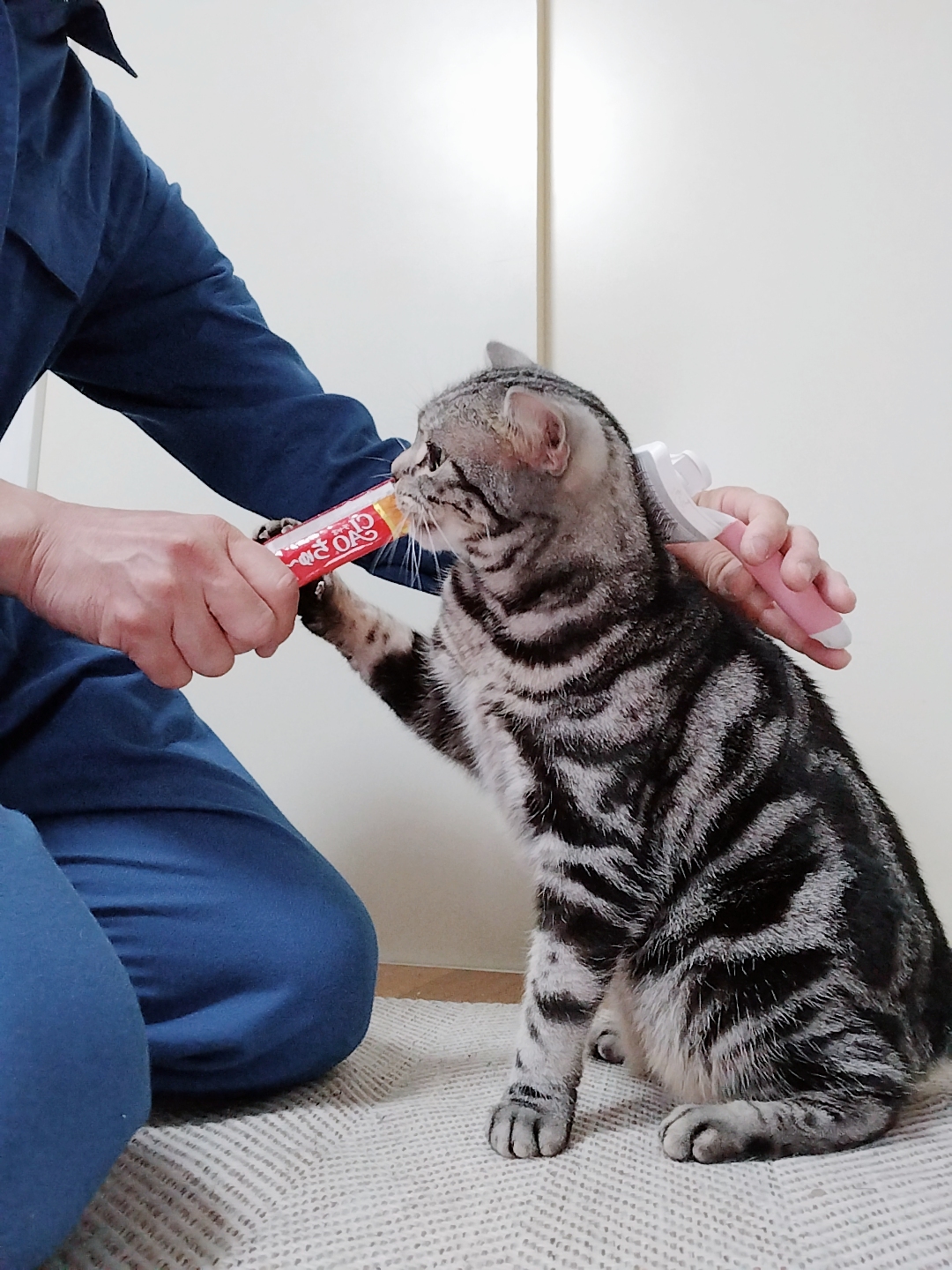 沢山遊んだらお待ちかねの ちゅーるをどーぞ!?