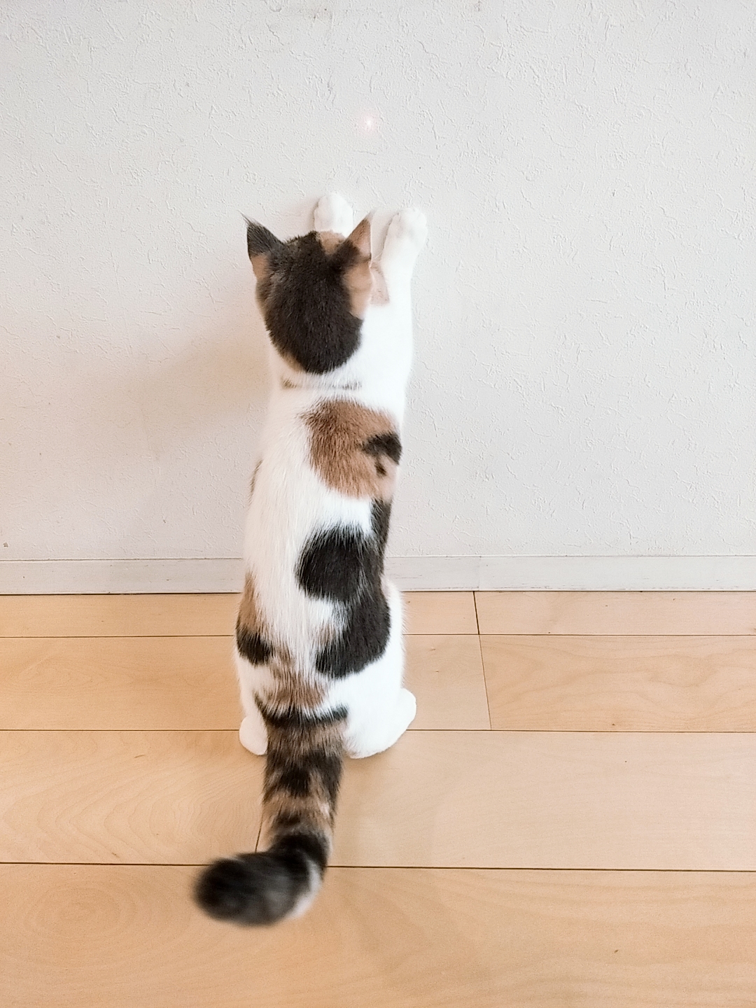 大好きなニャンコレーザーを使うと目にも留まらぬ速さで追いかけっこ&疲れ知らずです(汗)😸