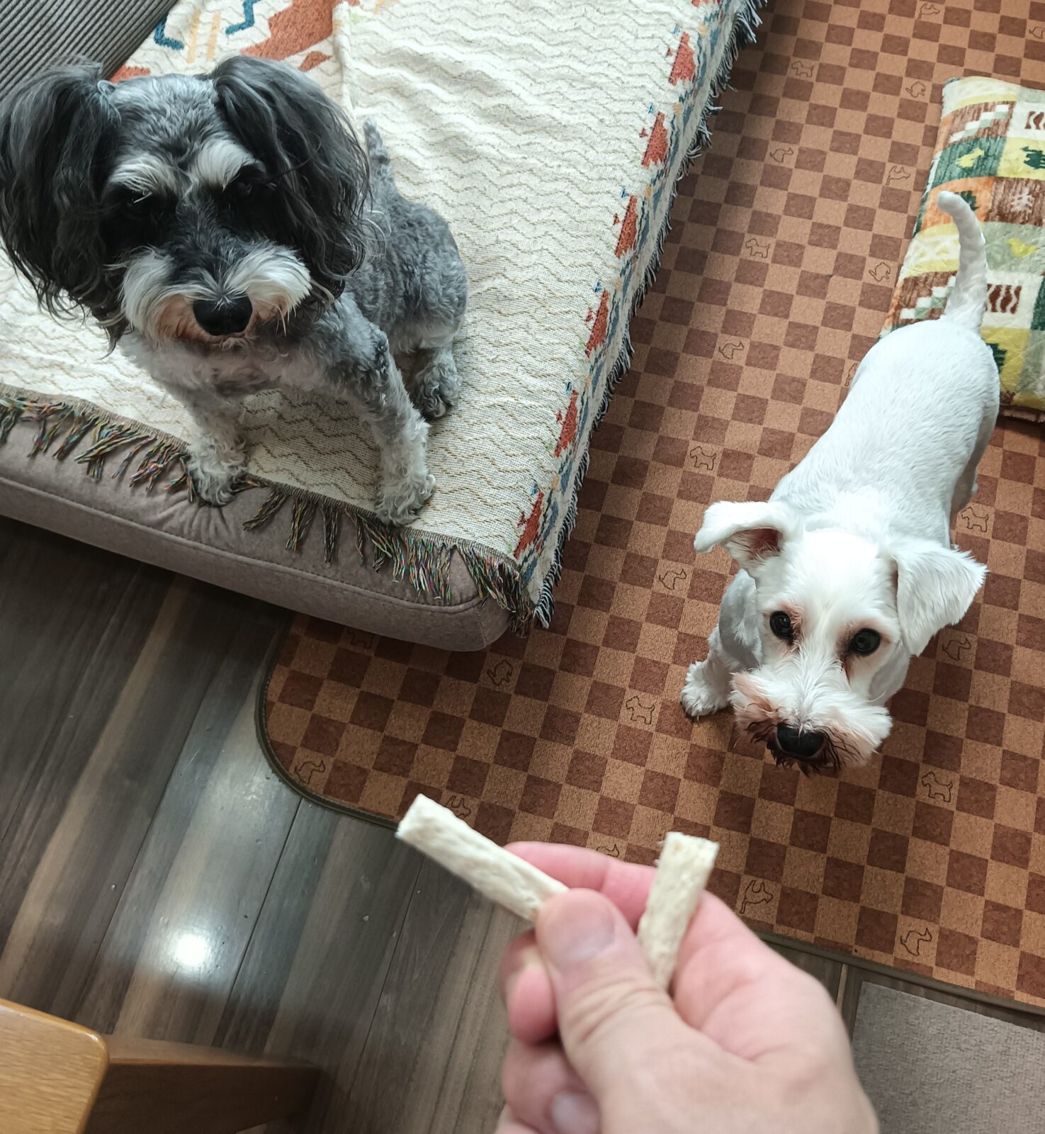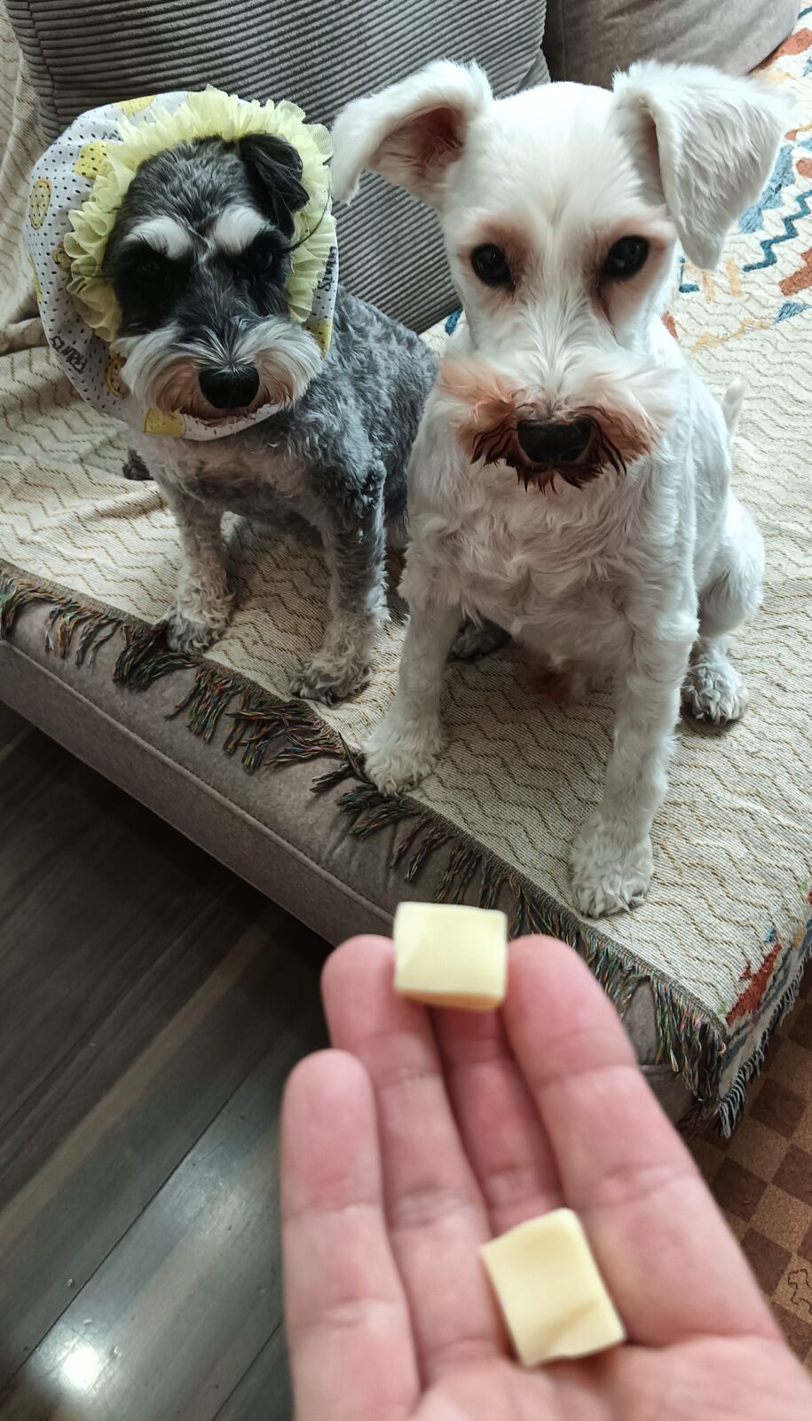 ちゃーんとお座りをして我慢が出来るミニチュアシュナウザーちゃん達です。