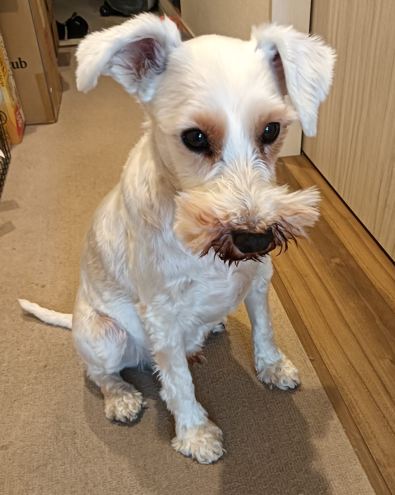 玄関の扉を開けると元気よく尻尾を振ってお出迎えをしてくれました〜🐶