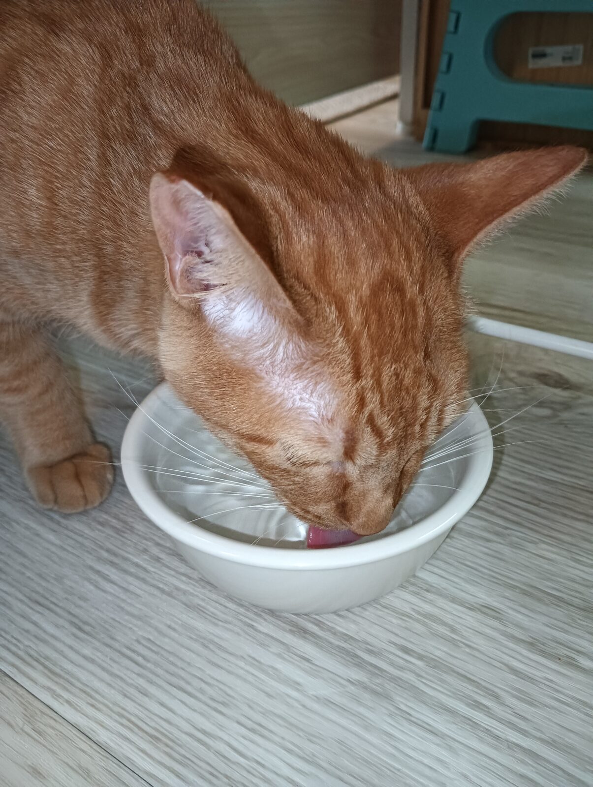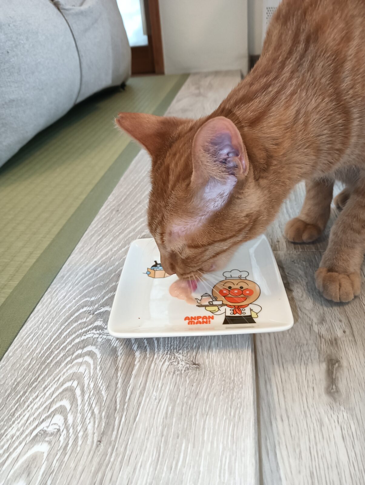 お顔とお耳のケアの前に少しだけ ちゅーるを食べてもらい頑張れました😸