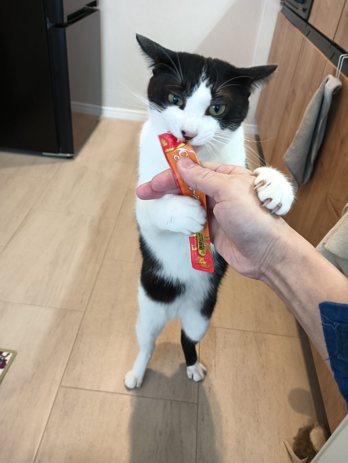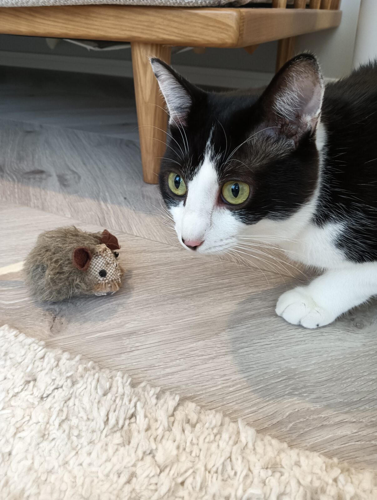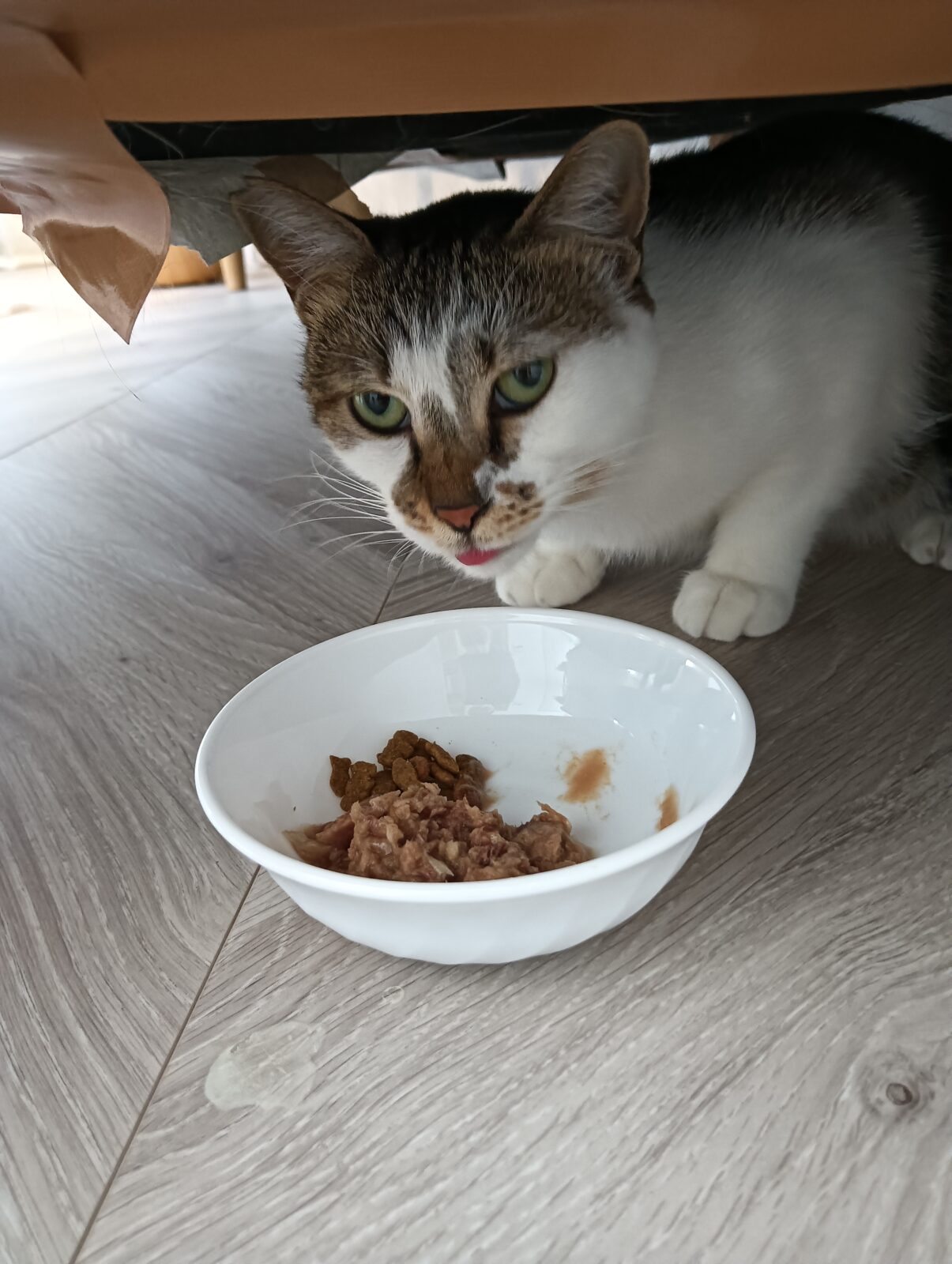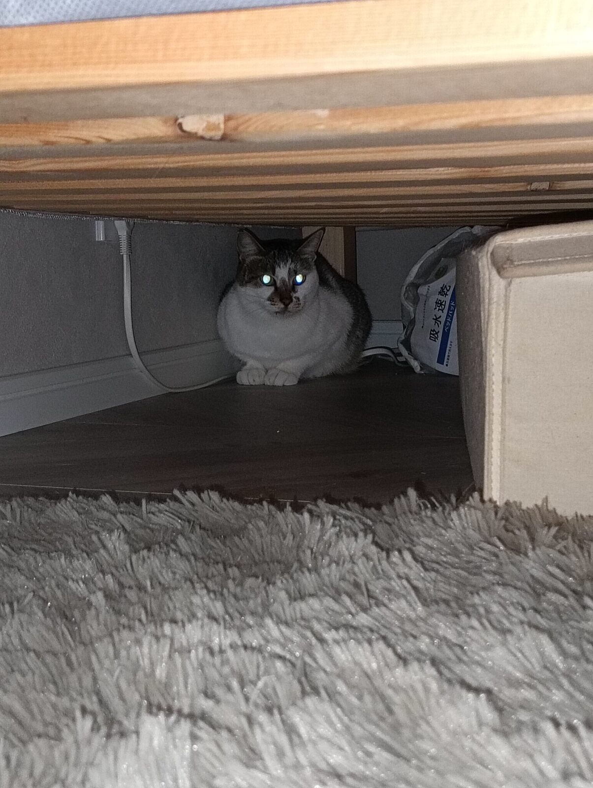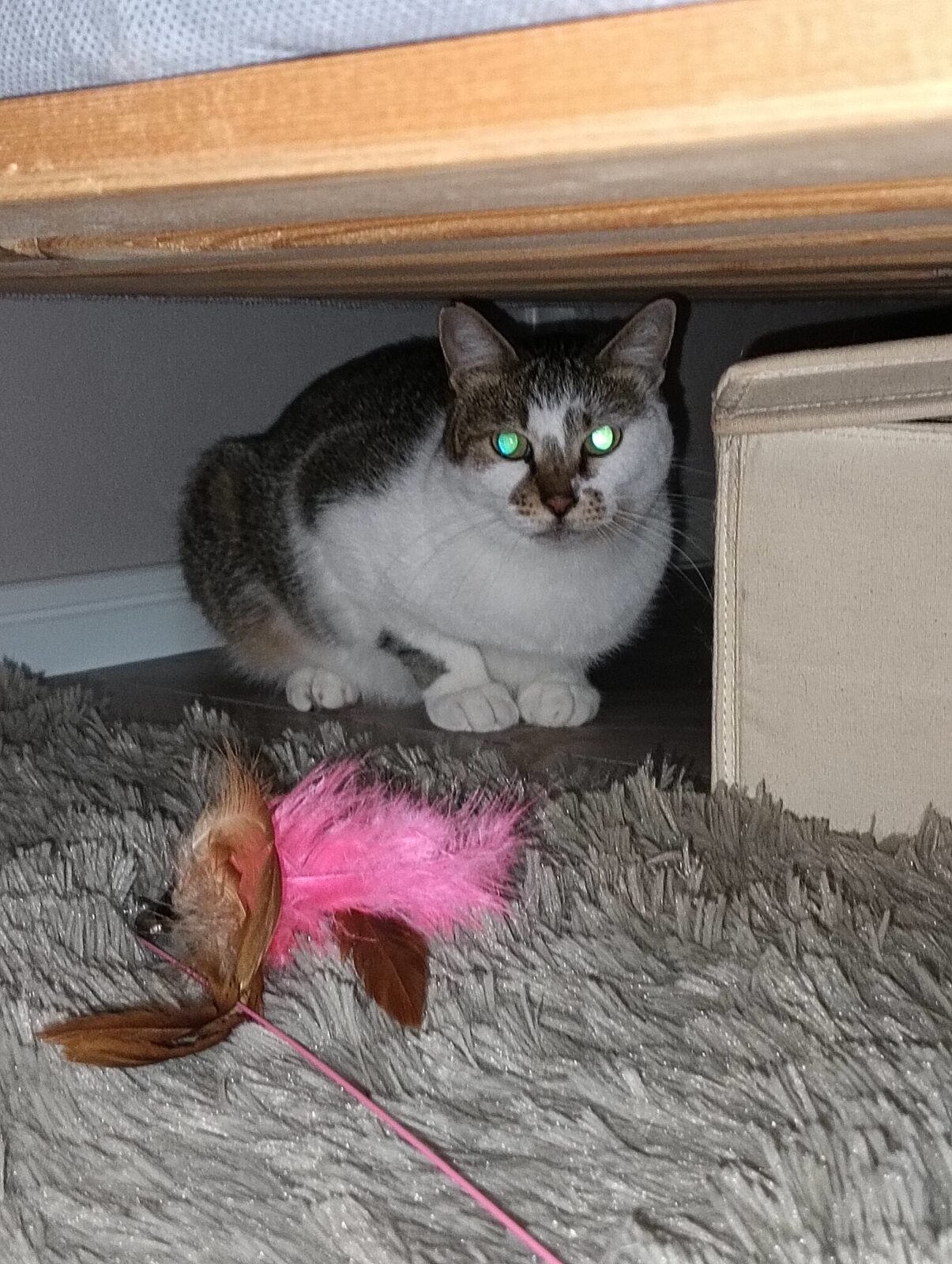 おもちゃ遊びは白黒くんと遊ぶ事が出来ました😺キジシロちゃんはベッドの下に隠れていましたが、しばらくすると白黒くんが一緒に遊ぼうよと呼びに行ってくれた様子です(多分w)🐱