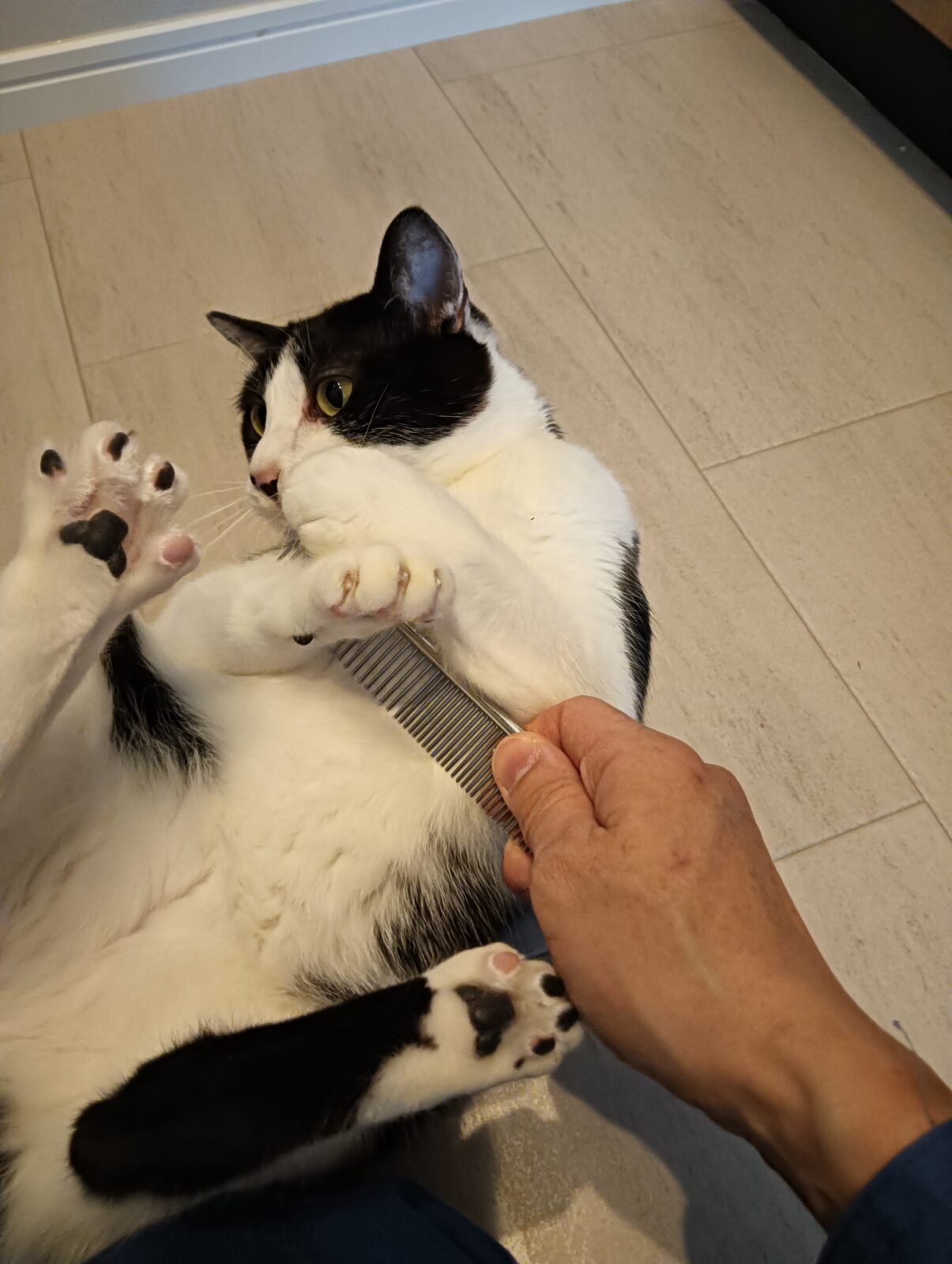 お爪は伸びていたところをカットしました。ブラッシングはとっても気持ち良く感じたのか寝っ転がりながら行いました(笑)😽
