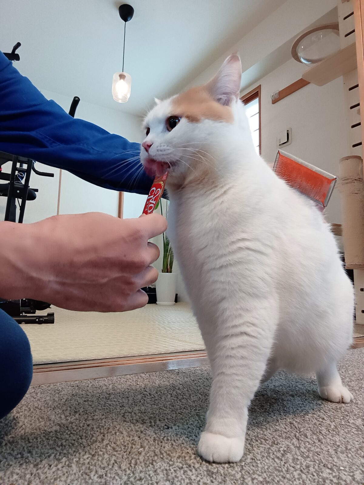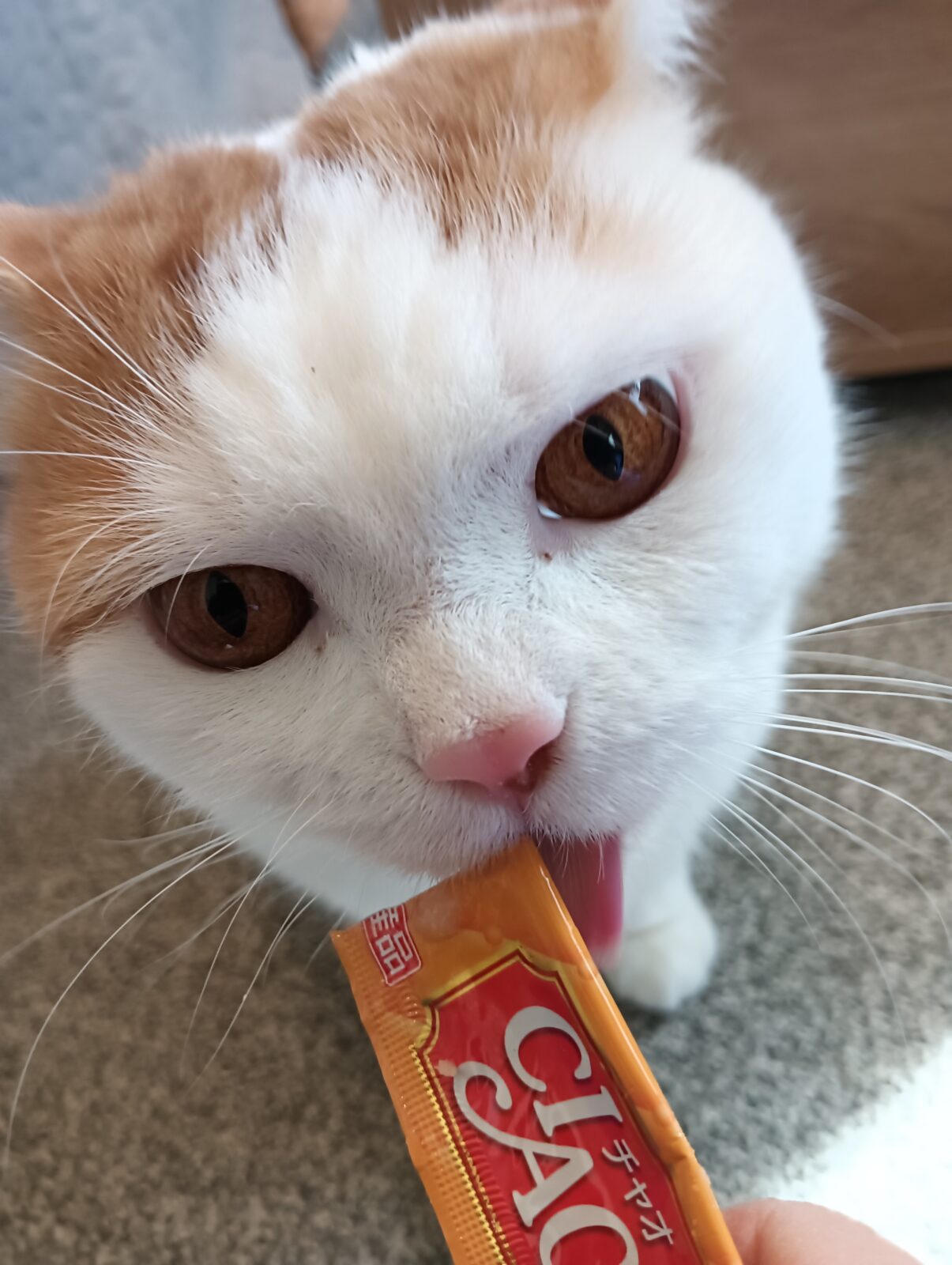 ちゅーるを食べながら〜ブラッシング良い感じに行えました(笑)