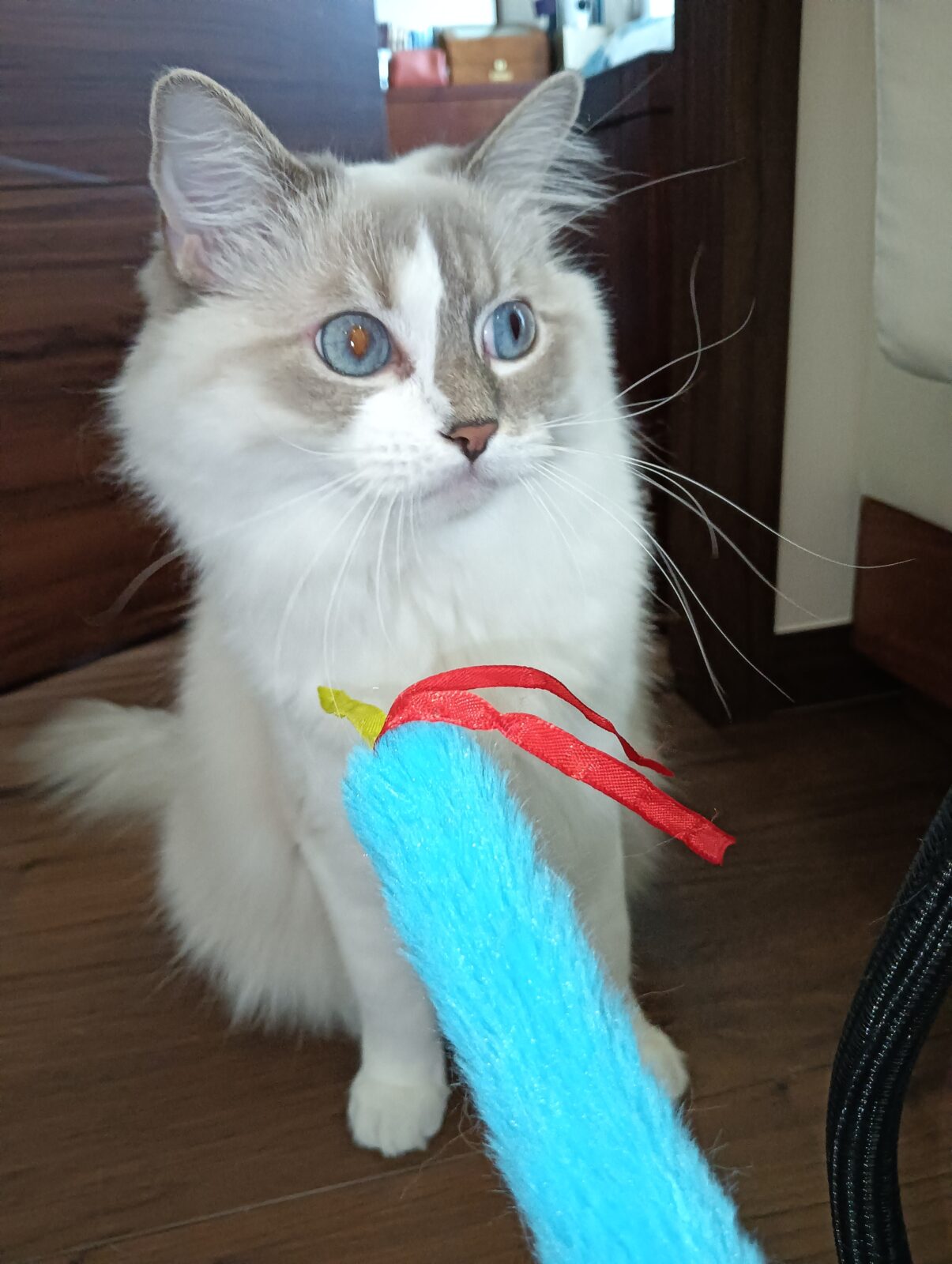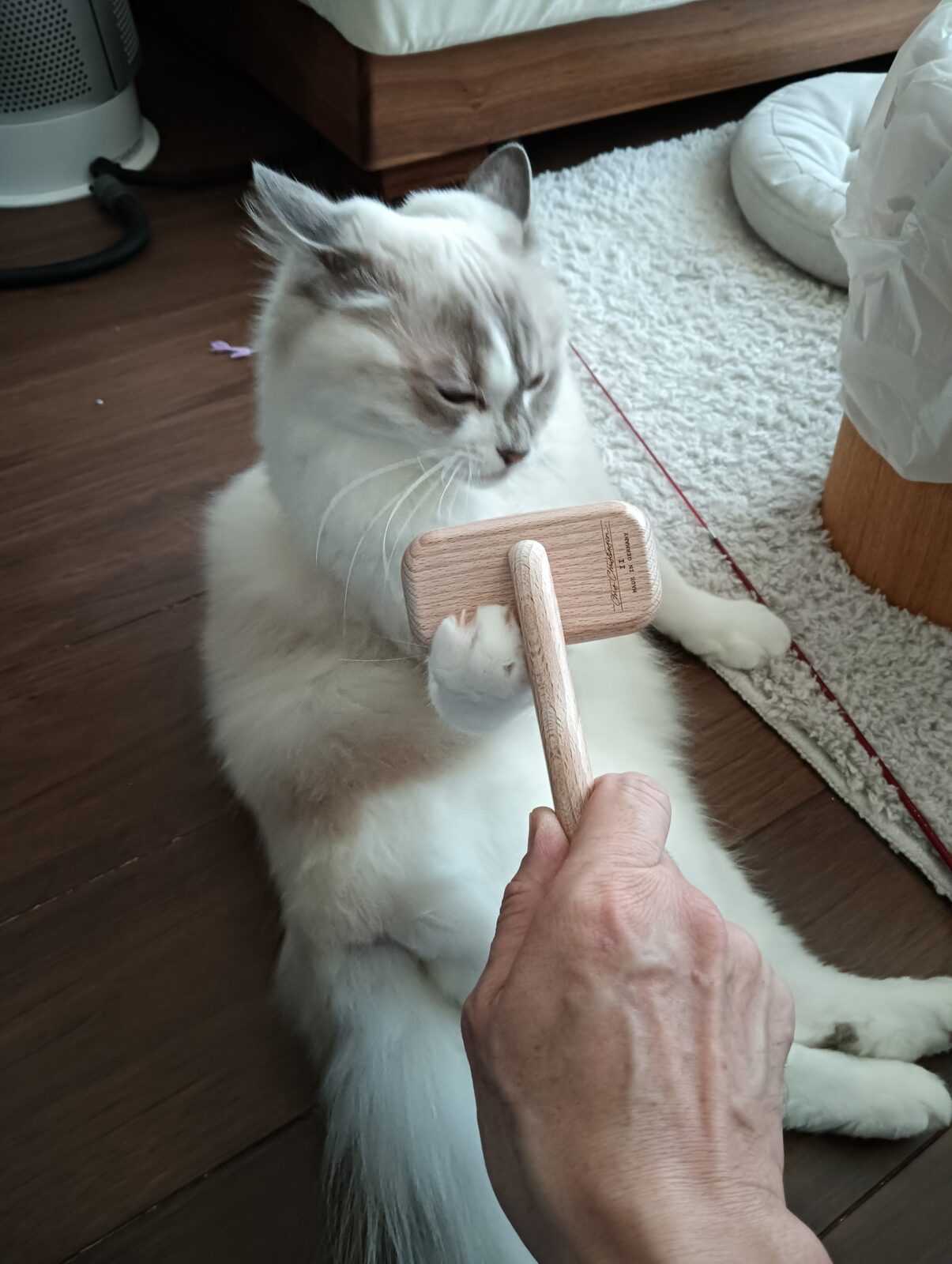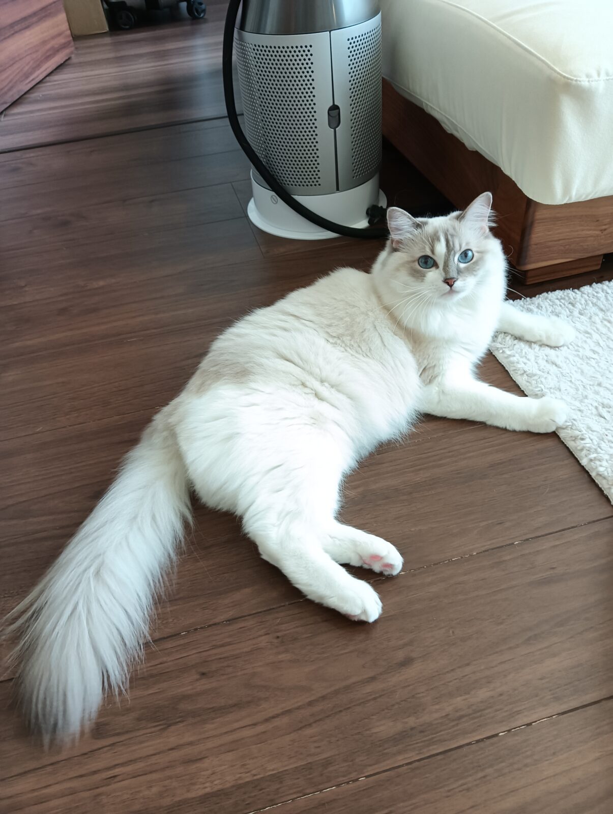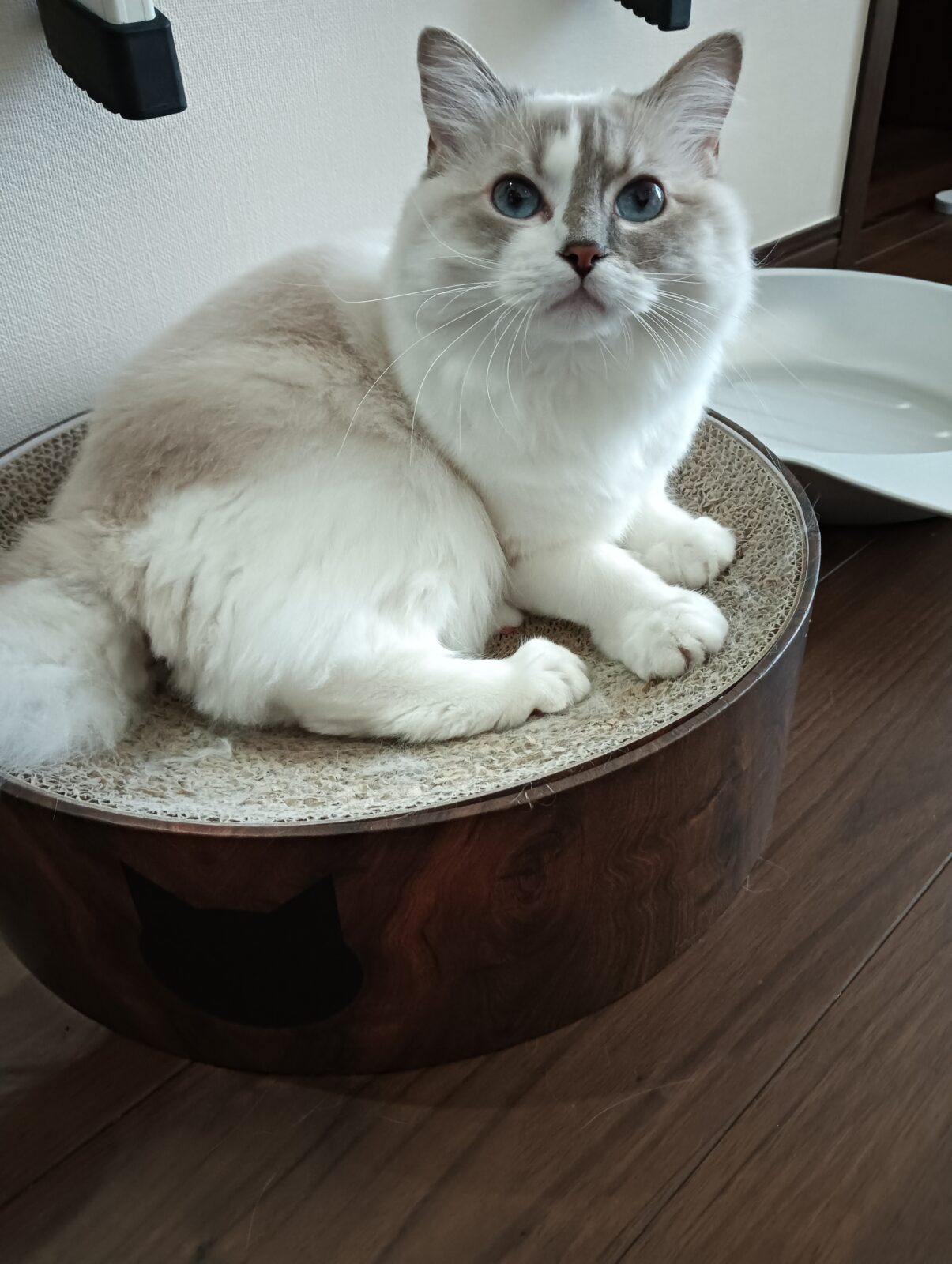 ラグドールちゃんお爪の確認させてね?伸びているのでカットしたいんですけど〜爪切りを見た途端シャーシャーと言われてしまいましたが頑張ってくれました😹