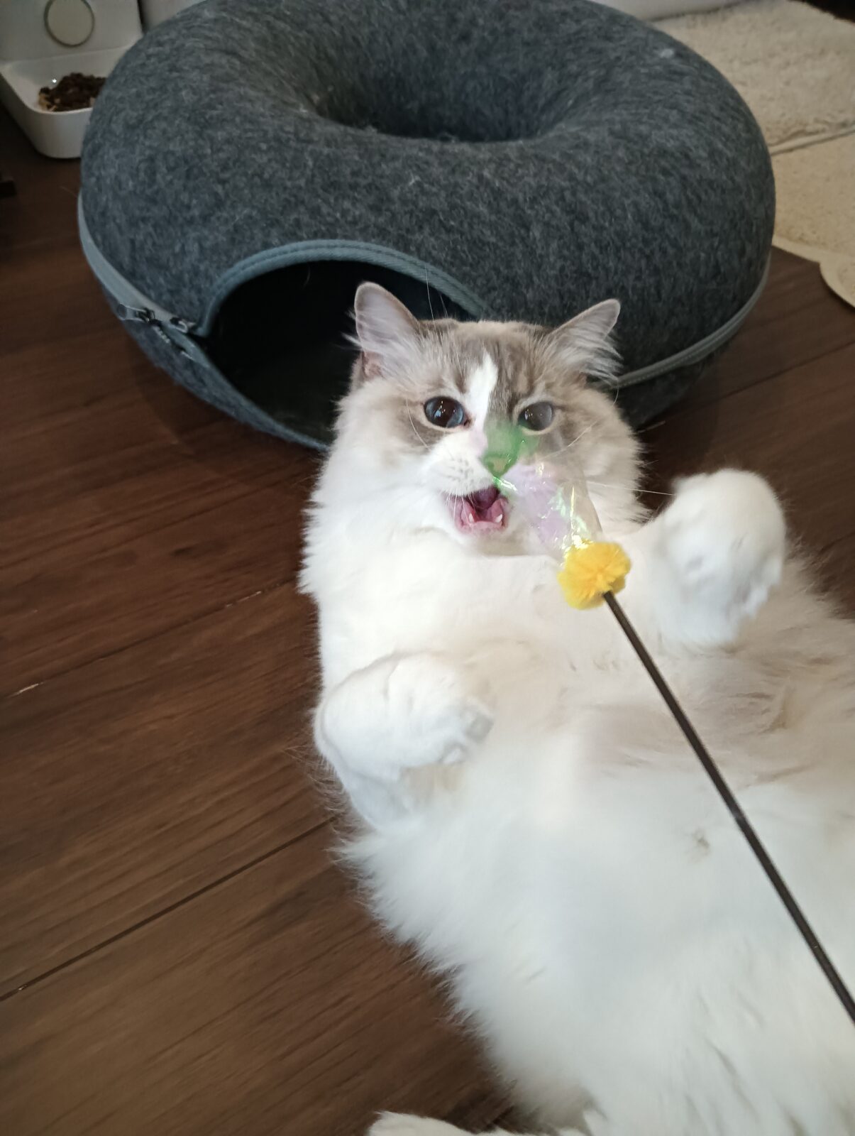 抜け毛の毛玉ボールで遊んでくれました🐱