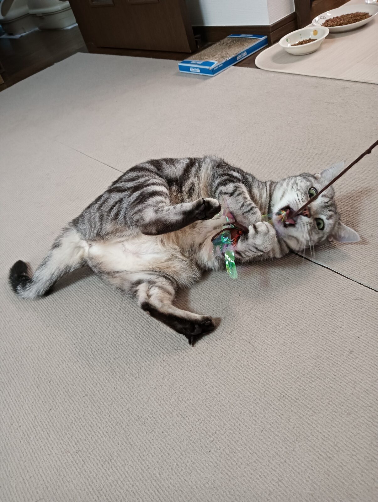 アメショーちゃんは離れた所に居て、アメショーちゃんと遊ぶと黒猫ちゃんはお隣のお部屋に入ってしまい一緒に遊ぶことが出来ないんです😿