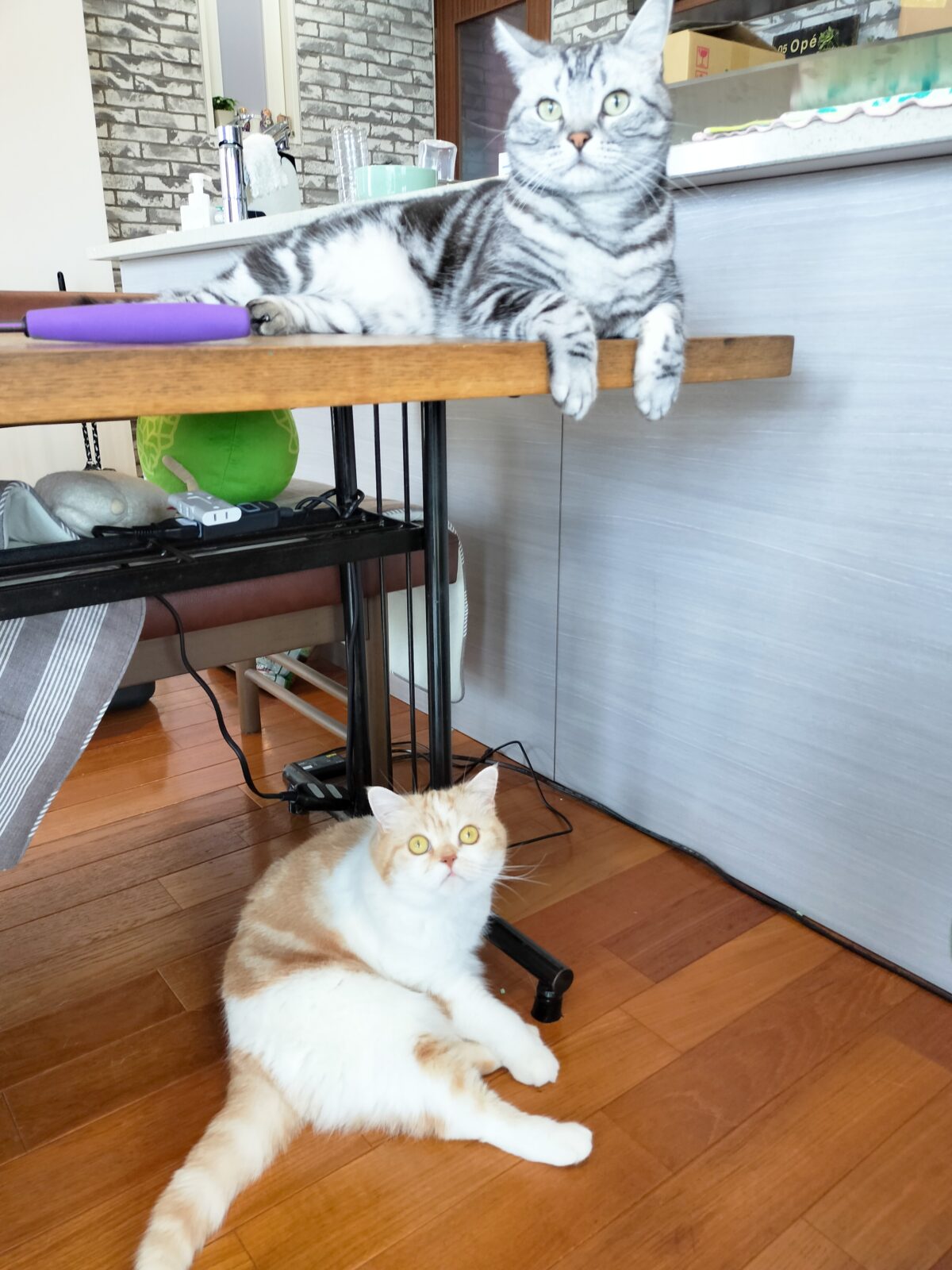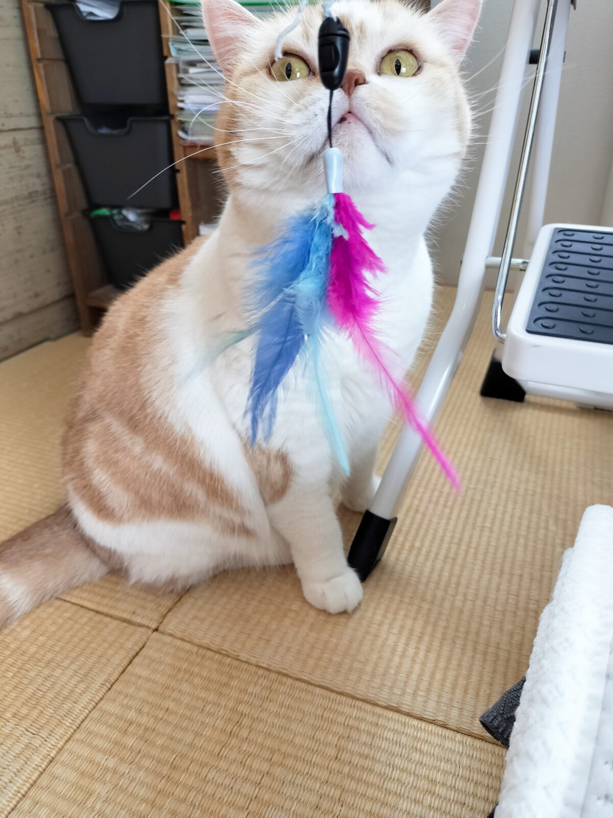 おもちゃで遊ぶとアメショーくんは反応が早く、スコちゃんはマイペースでその時の気分次第でした(笑)また遊ぼうね~😊😻