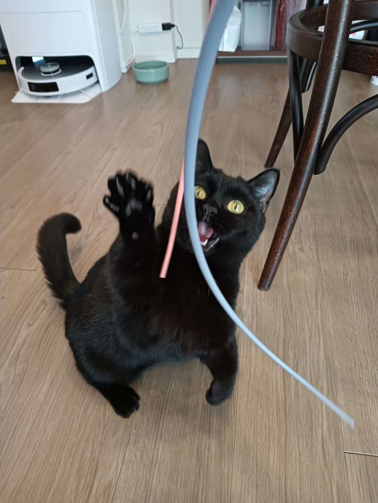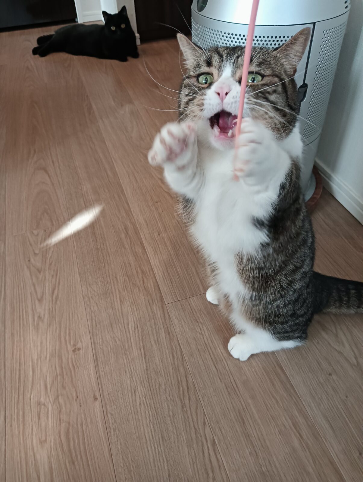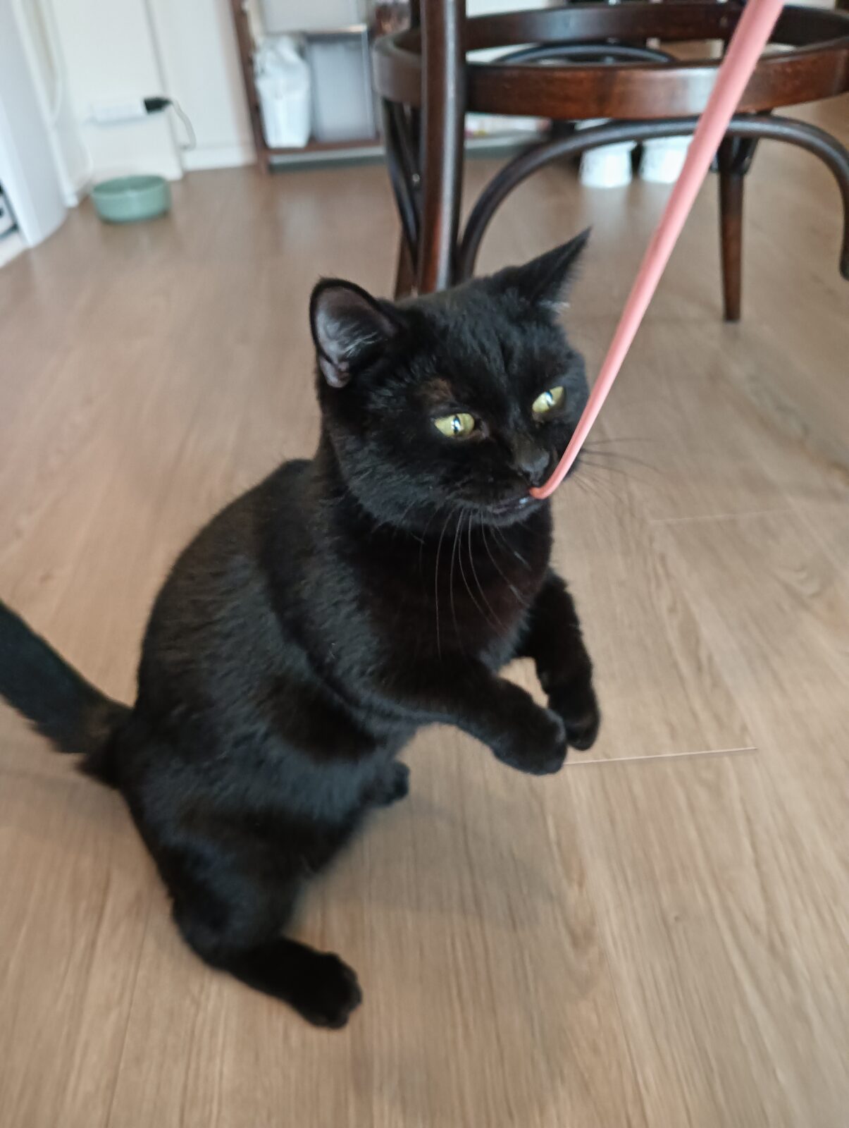 弟黒色マンチカンくんは動体視力が優れ二足歩行も出来ちゃう運動神経バツグンな子です🙀