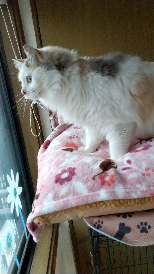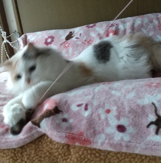 ベットでお昼寝、ベットで遊びタイム、ベットからニャルソックスのももちゃんです。