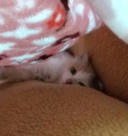 ももちゃんのお気に入りの場所は、ゲージの上の大きなベットです。初めてのお泊りは、サークルの中が落ち着く場所でしたが、お泊りを重ねるうちに大きなベットがももちゃん専用ベットになりました。
