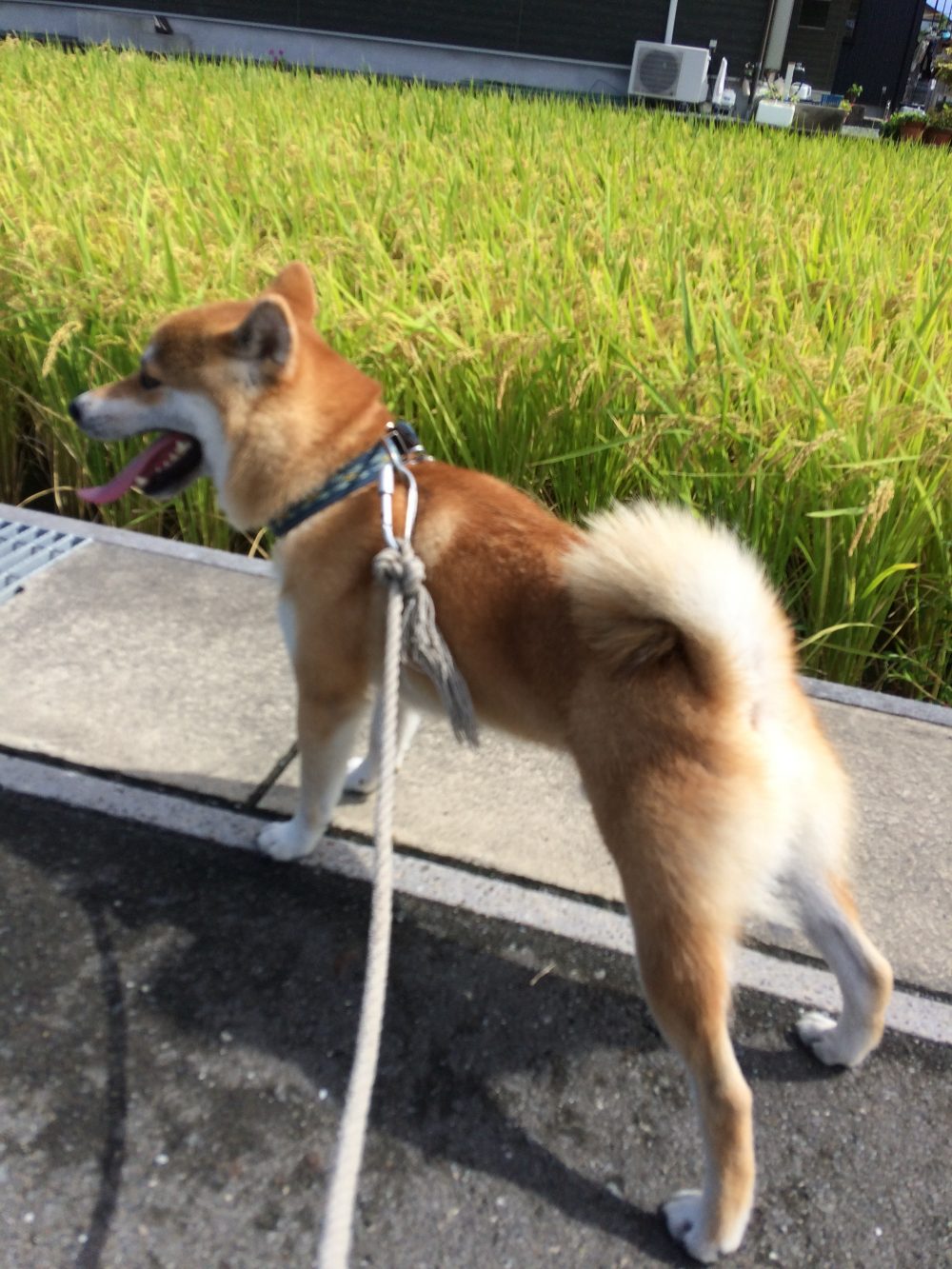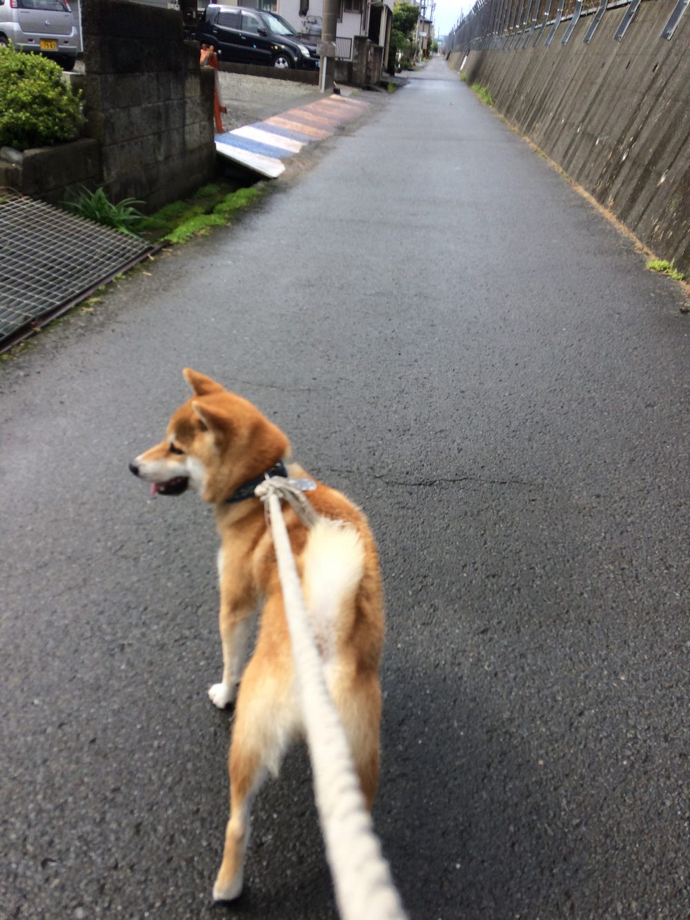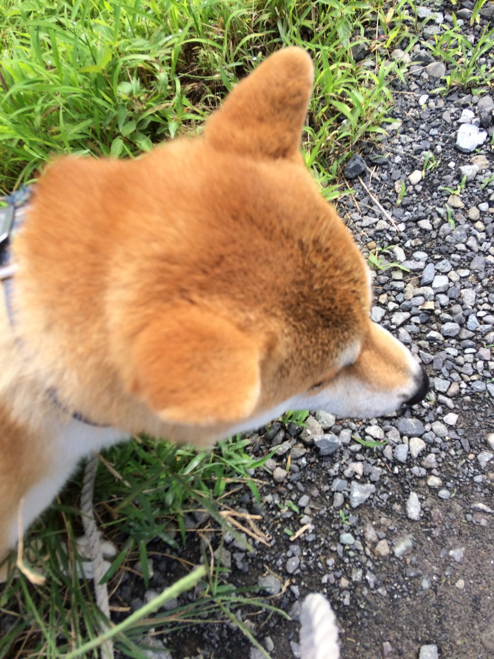 焼津市小屋敷柴犬かぶ君、2日目のお世話です。今日もお散歩前に一吠えし、出掛けました(^_^;)