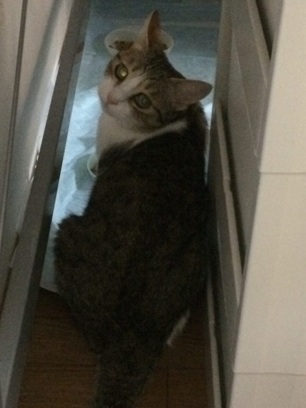 朝、ももちゃんはクローゼットの奥の暗いほうにいました。
