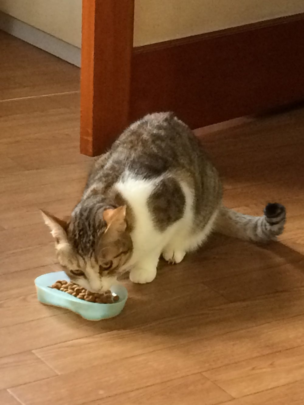 すずちゃん、ご飯もこちらをチラ見しながらですが、私の前でカリカリと音を立てて食べてくれるようになりました。