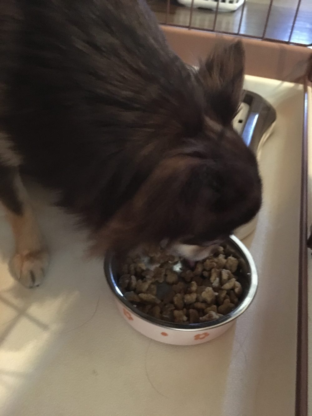 帰ったら、ちょうどいい具合にやわらかくなったご飯にトッピングを混ぜて、ご飯の時間です。ラニちゃんは少し時間がかかりましたが、2匹とも毎回完食でした。よかったです(^^)