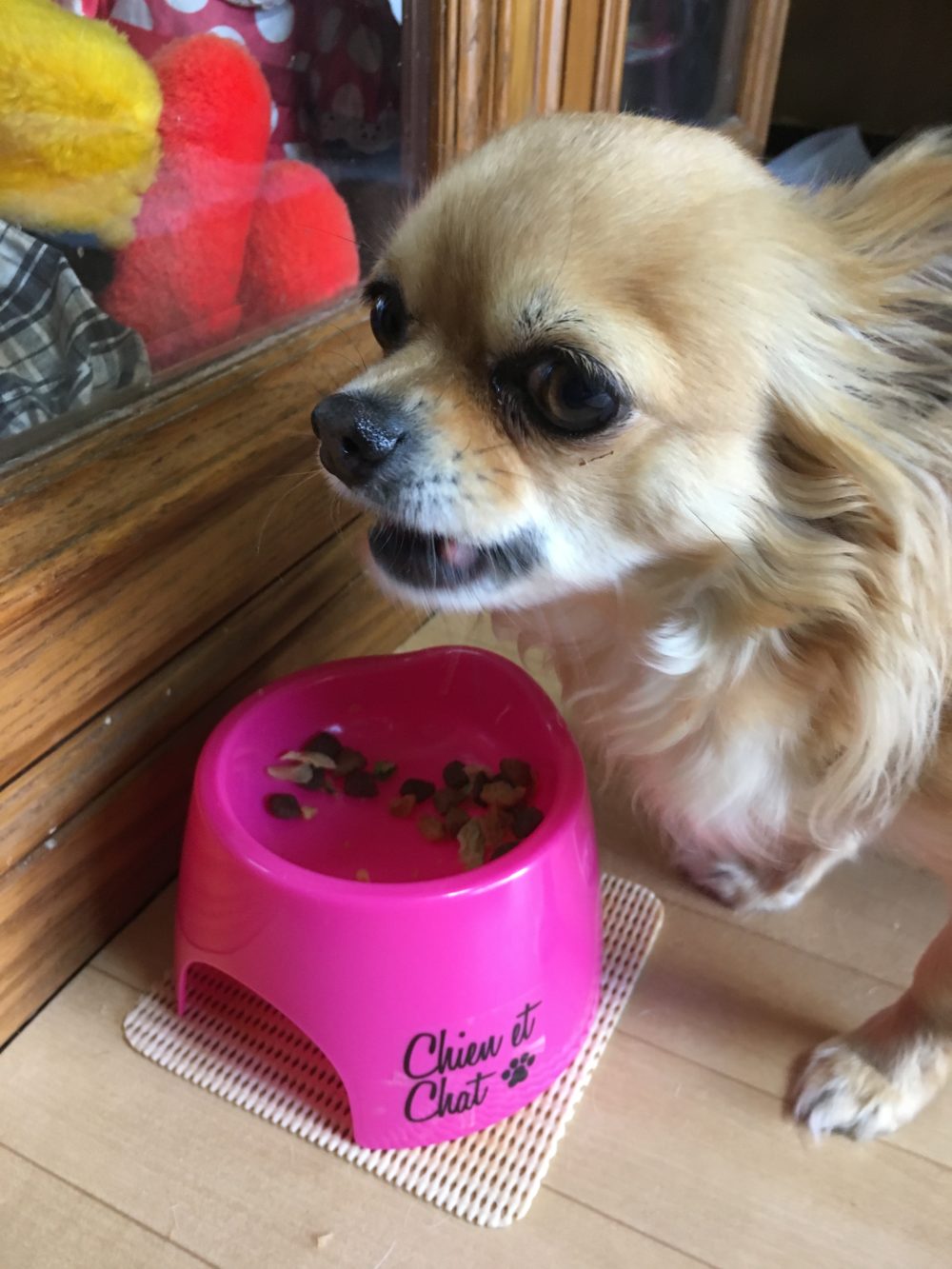 お伺いすると2匹が玄関まで一緒に出てきてくれて、誰ですかー?と、ワンワンご挨拶。  すぐになきやみ、ご飯タイム。