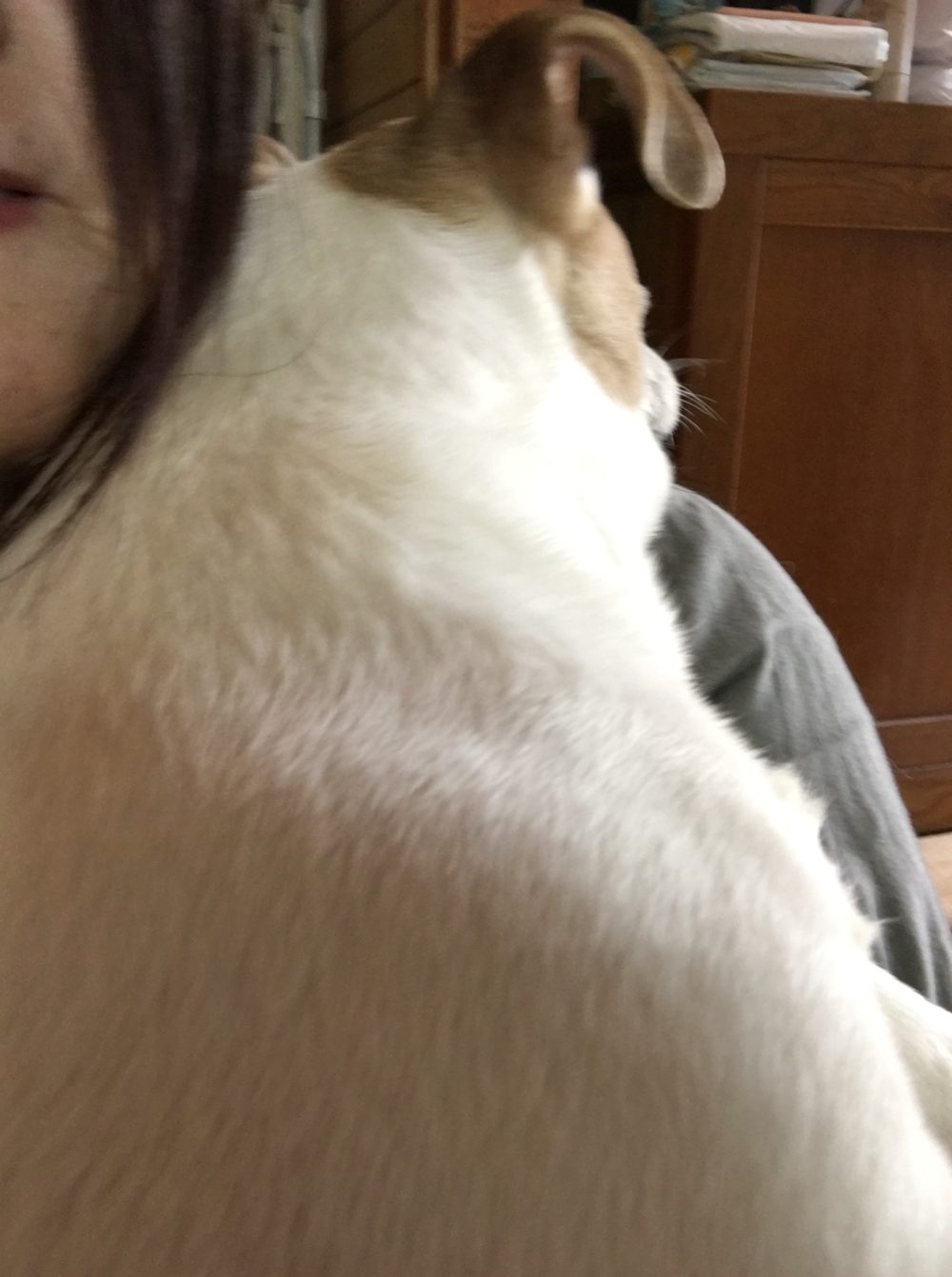 ライトくんはまわりが見えないため、音にとても敏感です。こちらが気づかないような音も聞こえているようでたまに急になきだしますが、シッターには理由が分かりません。 ないてるライトくんが落ち着くまでどんぐりちゃんを抱っこしようと、「抱っこ?」という言葉を発した途端、どんぐりちゃんよりも早くライトくんが私に突進! 「抱っこ」という言葉が聞こえたんですね(^_^;) どんぐりちゃんには少し待っていてもらい、ライトくんを先に抱っこ❤︎