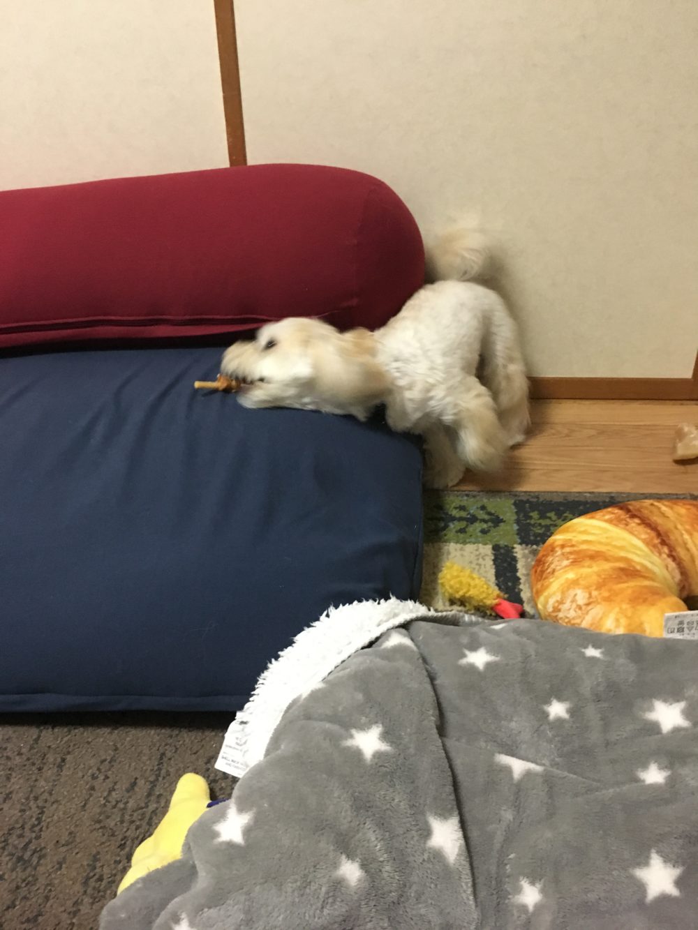 たまに玄関のほうを向き、飼い主様を待つ様子は見せますが、あとは元気いっぱい飛び回って遊んでいました。