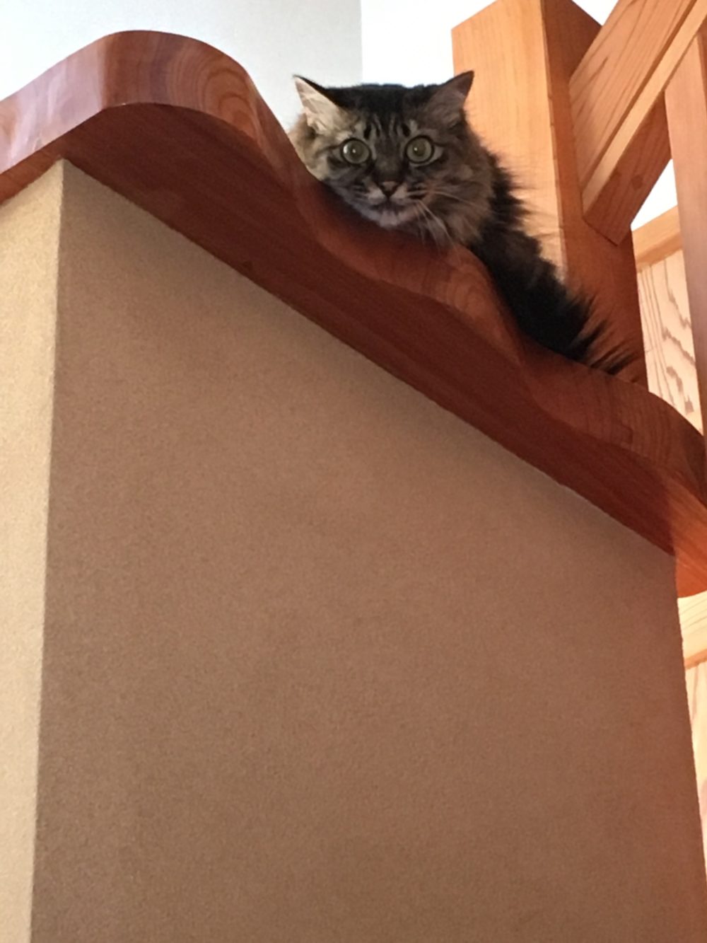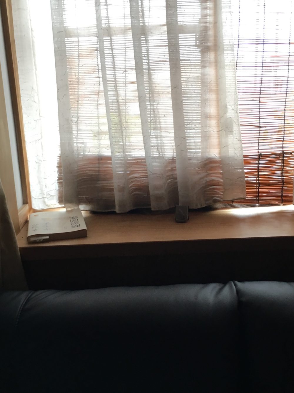 このカーテンの影がパールちゃん。