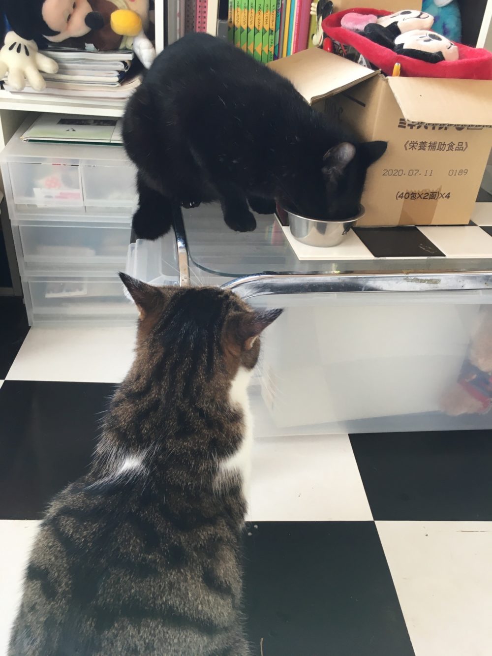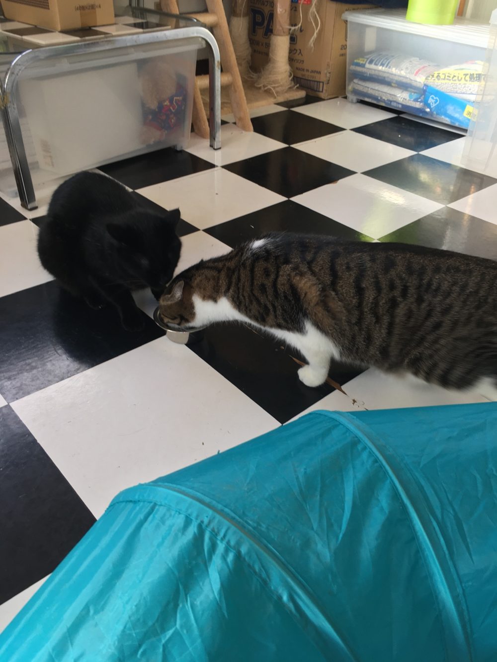 藤枝市の3匹の猫、しじみくん、あさりちゃん、ムールくん🐈🐈🐈 そう!貝のお名前で、しかも体の色が名前の貝の色なんです(≧∀≦)
