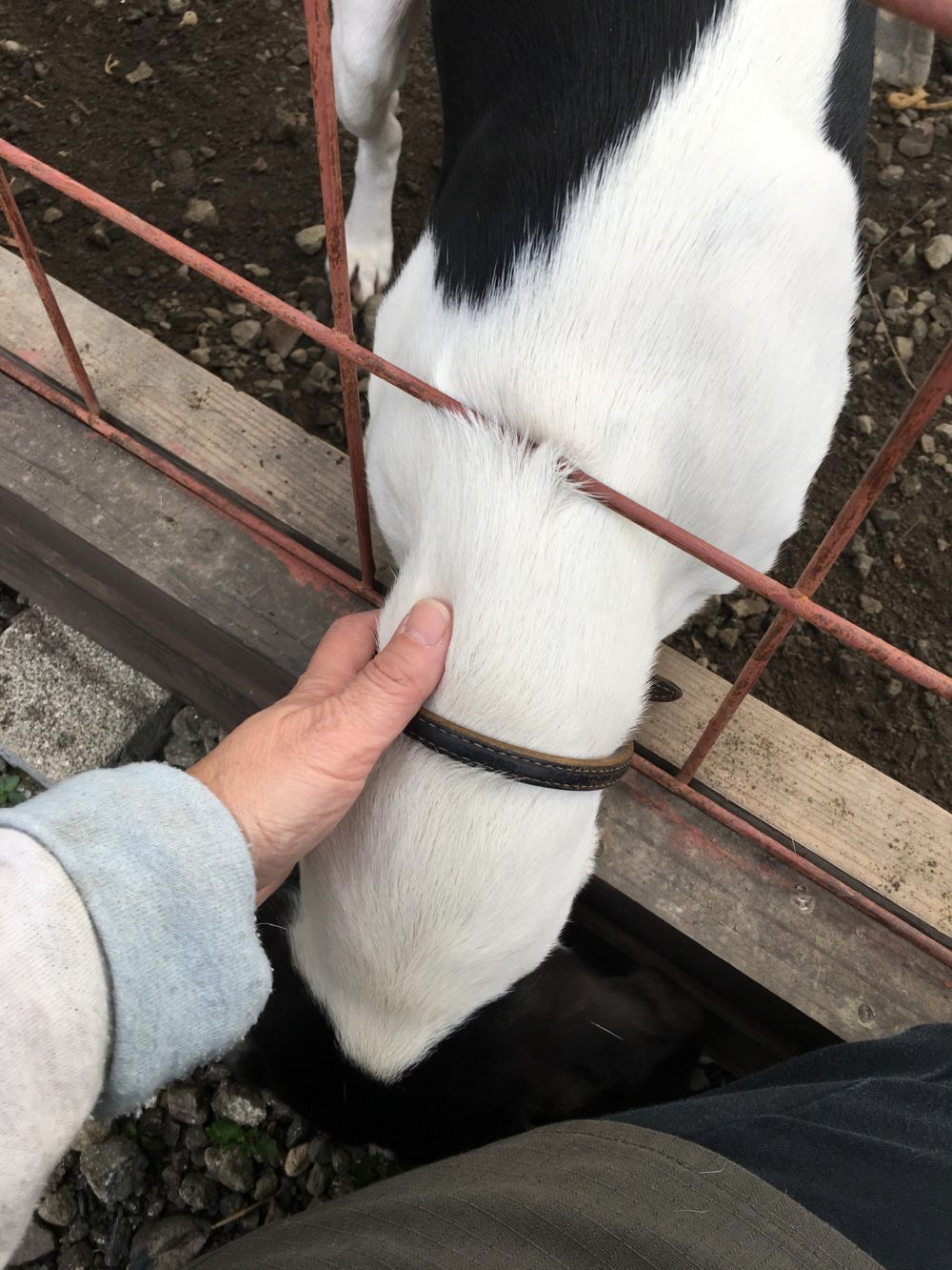 柵の間からニュッと顔を出し、撫でて〜と甘えます。