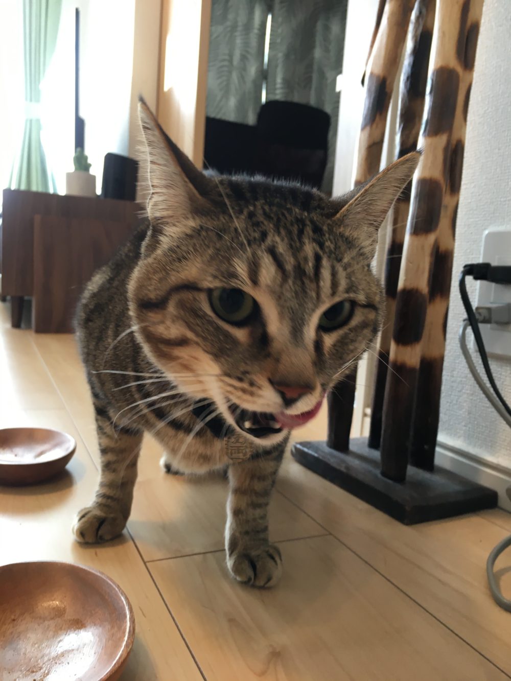 お部屋に入った時、すでにおなかが空いていたのかシャイな渚ちゃんがキッチン近くをウロウロしていて、私と目が合うと ニャー!と言いながら足にスリスリ♡