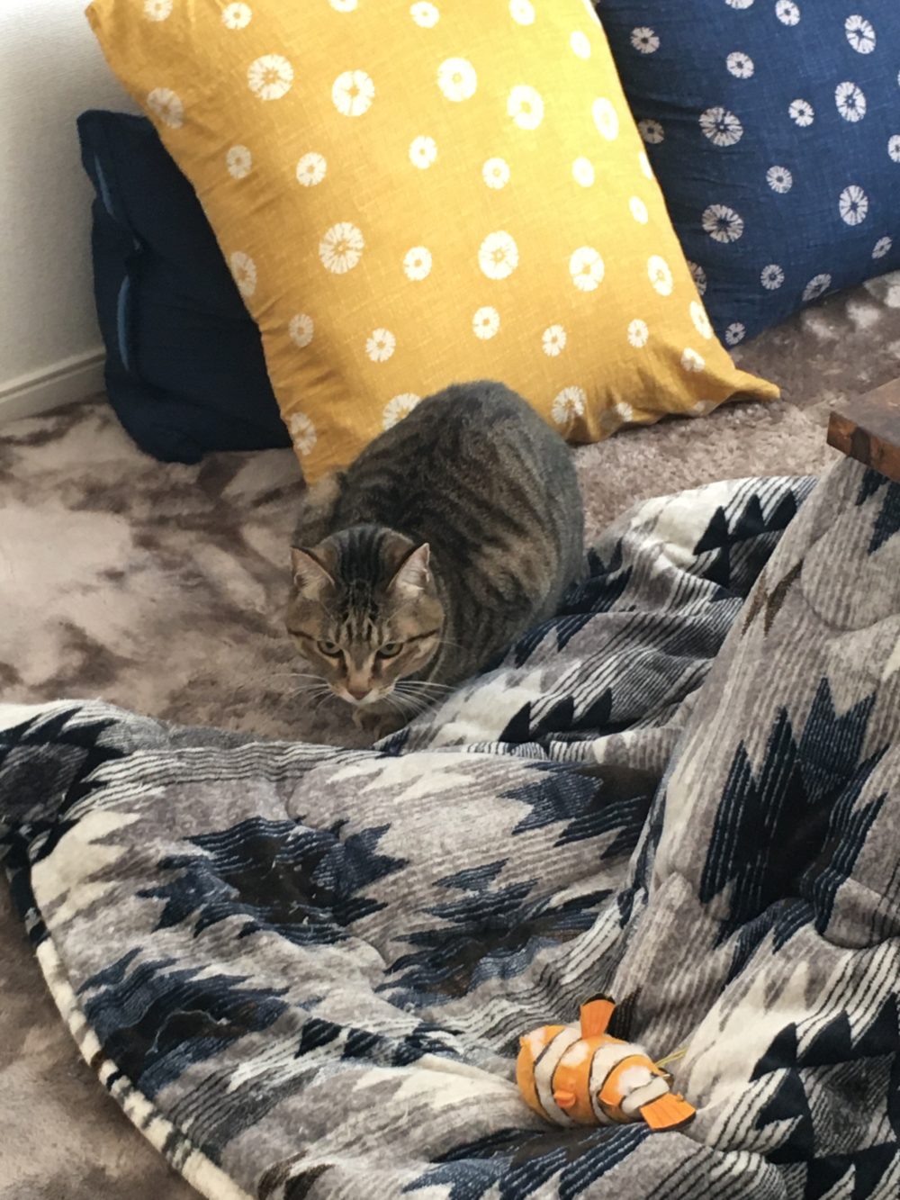 飼い主様ですと、ニモのぬいぐるみを投げるととってきてくれる虎之助くん。