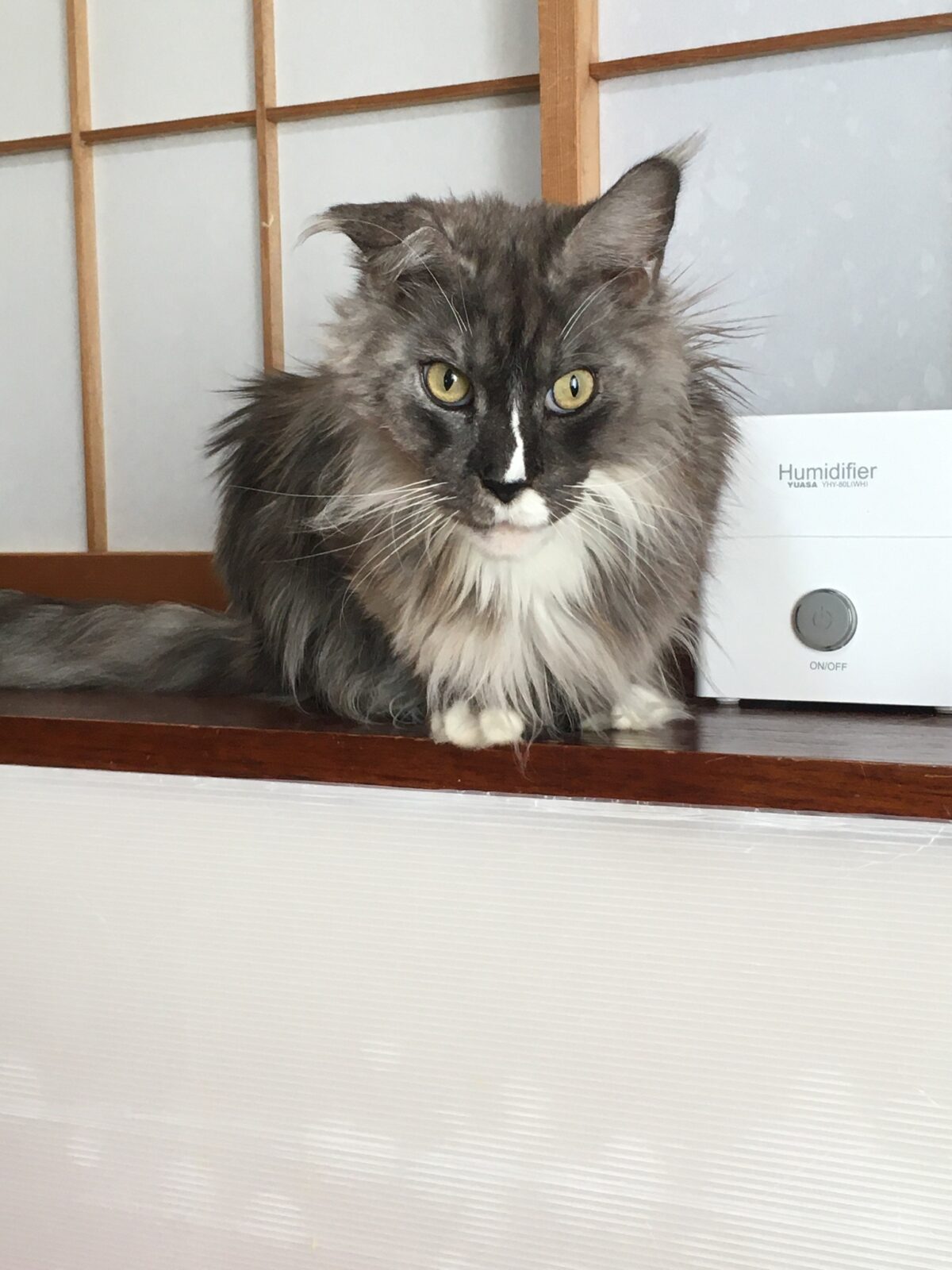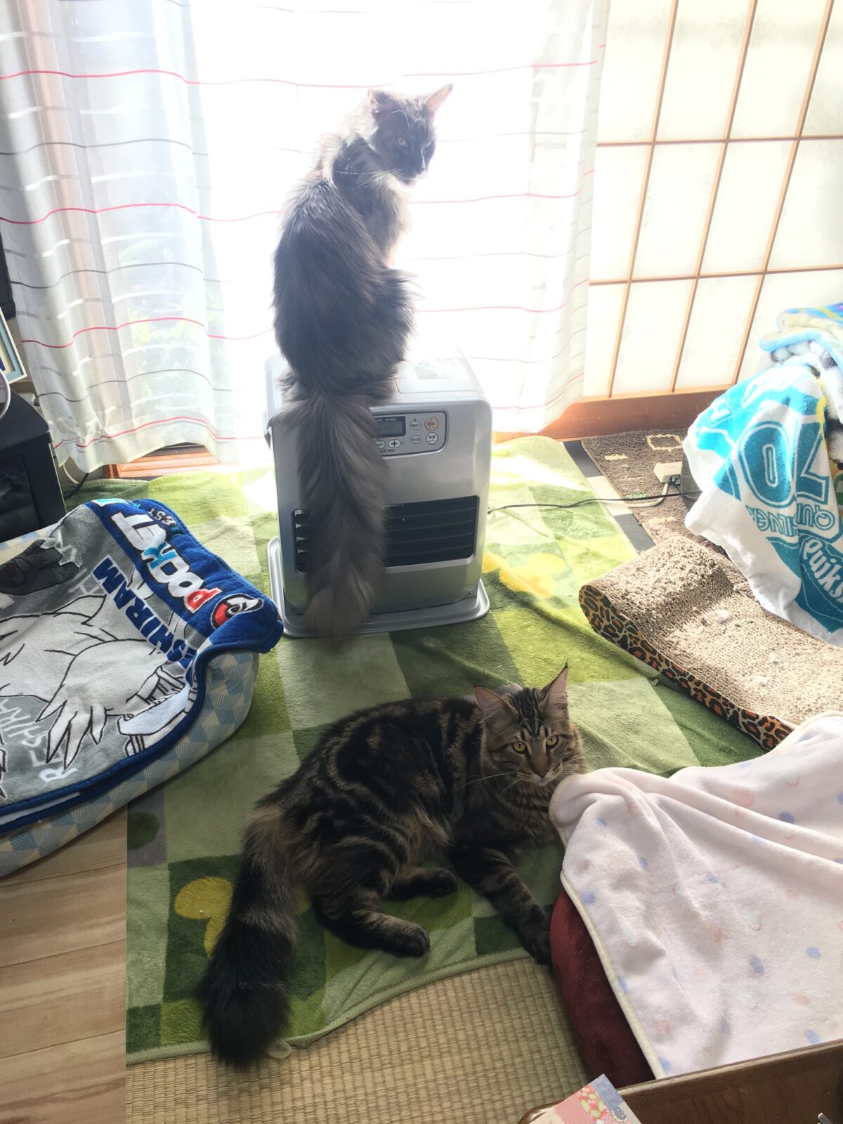 アンソニーくん、ヒーターの上に避難?!
