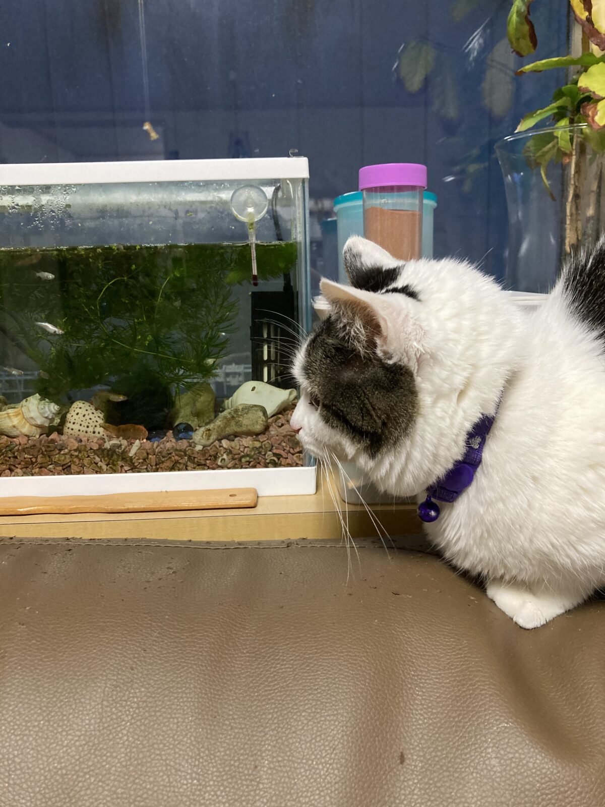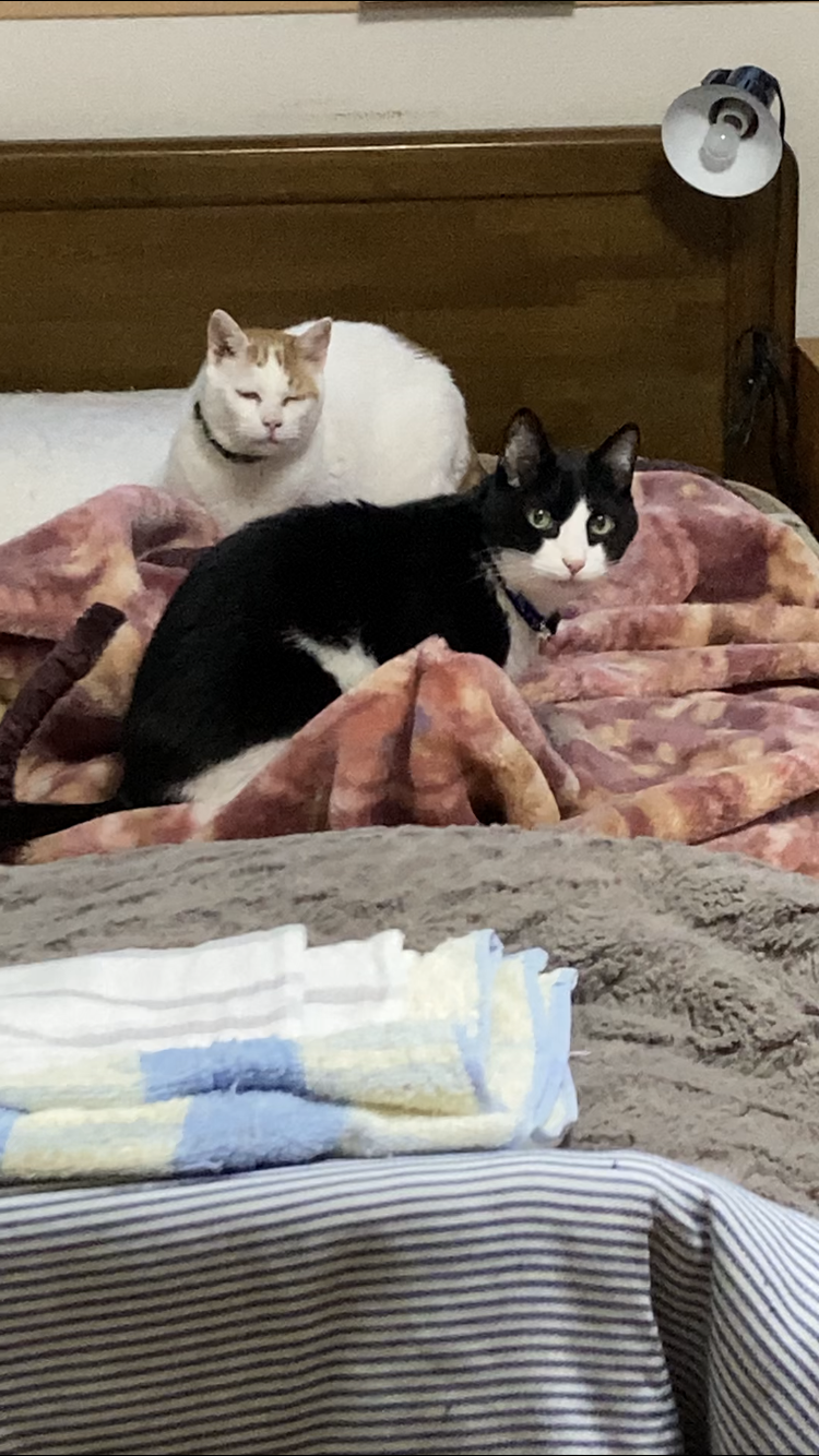 こちら、かつおくんとラブラブ中のびんちゃん🐈(上、白の子)