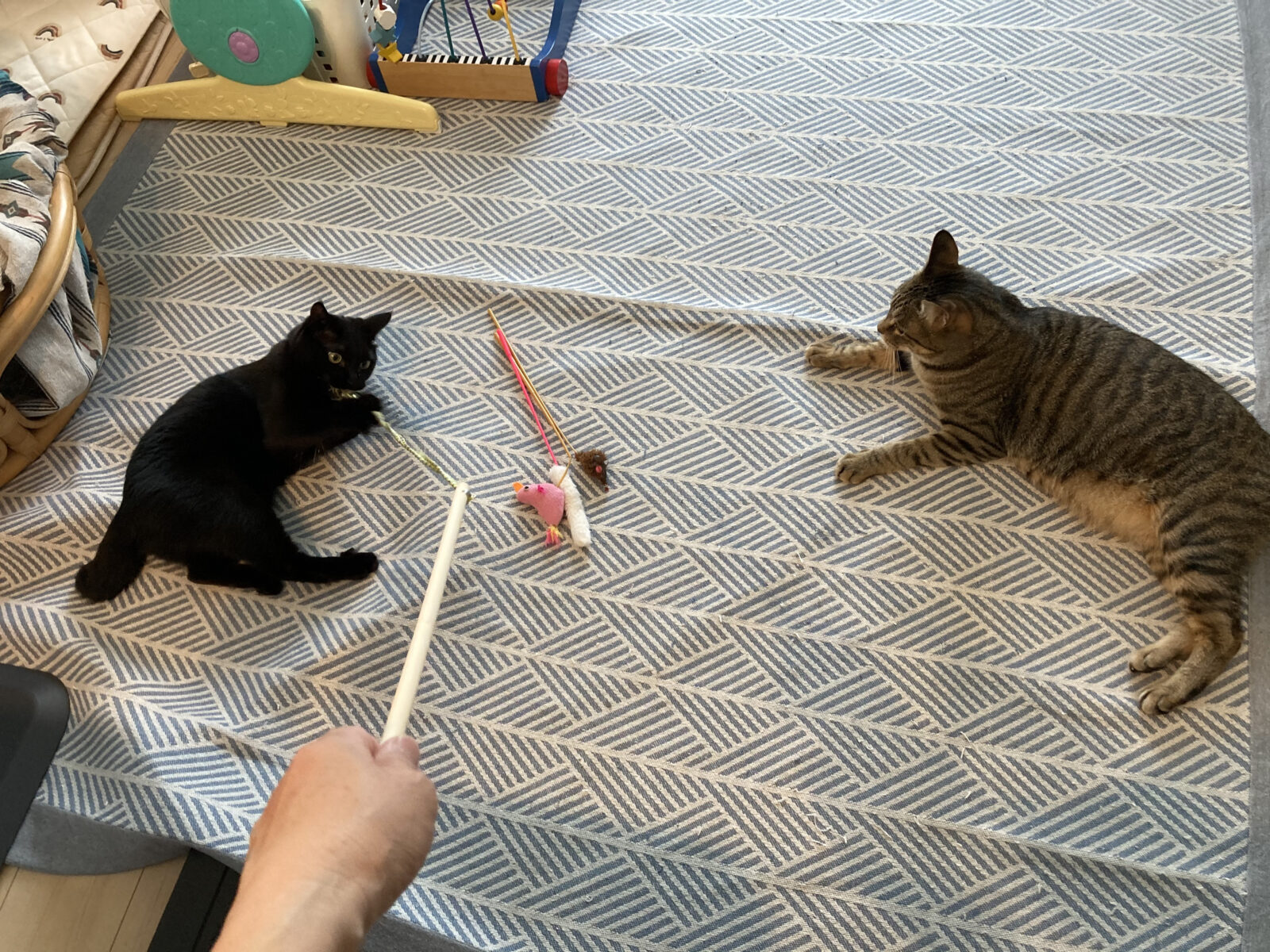 今まで遊びに誘ってもなかなかのってきてくれなかった2匹が。。
