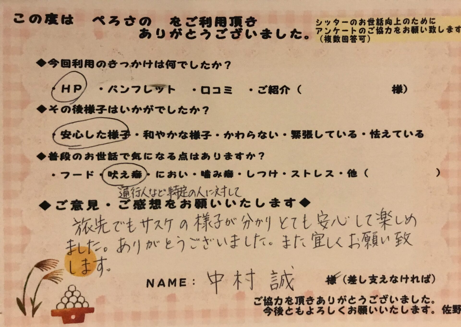 沼津市ペットシッター 清水町柴犬さすけ君お世話の様子