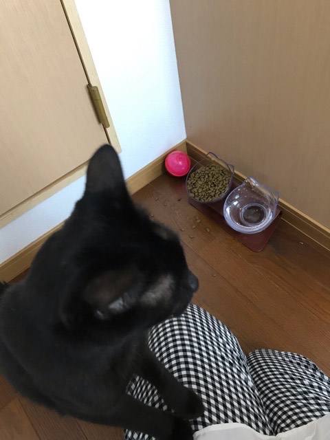 ニャーと寄ってきて目の前に座りスタンバイOK✊