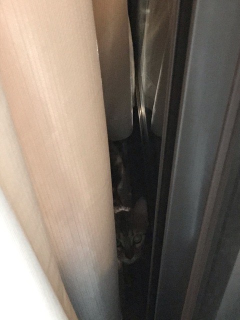 カーテンと窓の隙間に隠れています!!!キュンキュンです♡