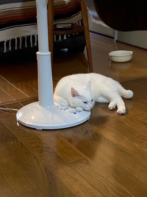 だいたいこうして扇風機を止めてしまうまろくん。癖すら可愛い💗笑