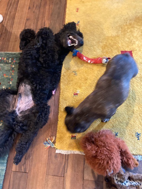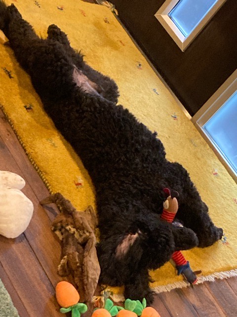 さて、ズデーンとおなかを見せちゃっているのが「ぼると君」スタンダードプードルです。