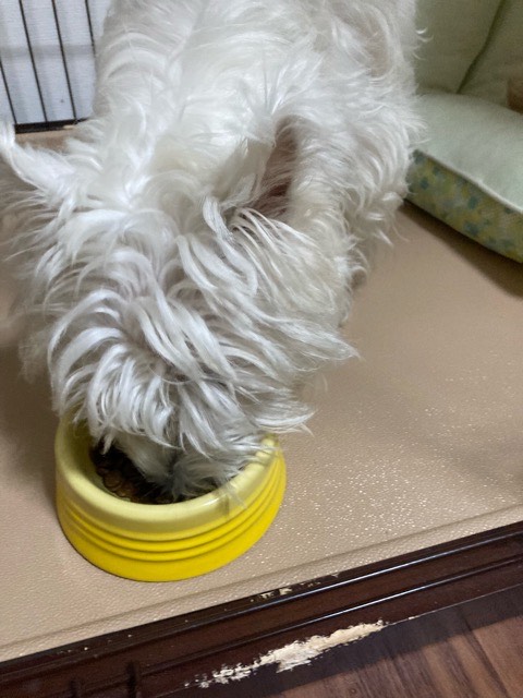 ご飯にしましょう!!ワンっと吠えながら待ってくれます。すぐに完食。