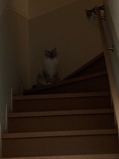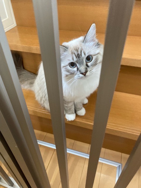 玄関をあけると階段にお出迎えに来てくれていました=^_^=