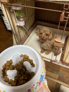 狆すずちゃんなつこちゃんは慣れてくれたかな💗、テンちゃんはベッドの下が安心できるね、水皿におもちゃ入れるのは意思表示だね。